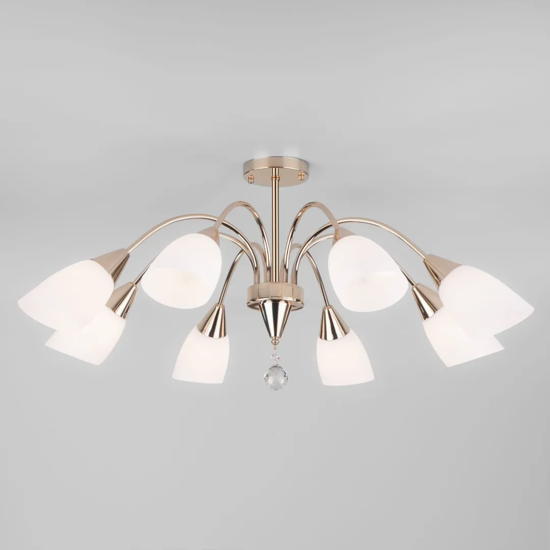 Организовать качественное освещение вам поможет современная потолочная люстра с хрусталем 30149/8 золото из коллекции Ellene. Хрустальная подвеска добавляет нотку роскоши и гламура, придавая светильнику особый шарм.