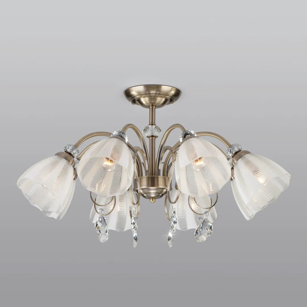 Потолочный светильник с хрусталем 30155/8 античная бронза из коллекции Floranse предназначена для создания основного освещения в современных и классических интерьерах. Плавные линии каркаса, хрустальные подвески и плафоны в форме бутонов тюльпана придают люстре неповторимый шарм. Люстра прекрасно впишется в интерьер гостиной, спальни или столовой, оформленных в классическом или современном стиле. Она рассчитана на площадь освещения 16 м²