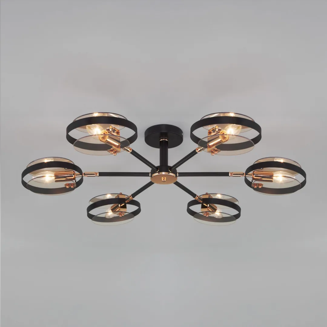Преобразить ваше потолочное пространство и организовать качественное освещение на площади 16 м кв. поможет стильная люстра 70121/6 черная в стиле loft. Строгий внешний вид и конструктивная простота форм привнесут в современный интерьер индустриальный стиль. В шестирожковой люстре используются сменные лампы с цоколем E14, рассчитанные на максимальную мощность 60 Вт. Потолочный светильник оснащен стеклянными плафонами и поворотным механизмом, позволяющим направлять световой поток в нужном направлении. В производстве люстры использован высококачественный металл с надежным защитным покрытием и закаленное стекло.