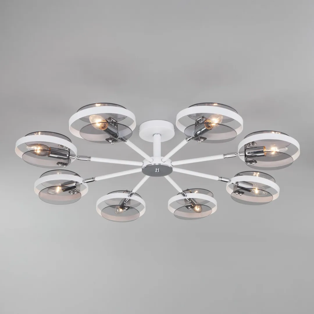 Преобразить ваше потолочное пространство и организовать качественное освещение на площади 22 м кв. поможет стильная люстра loft 70121/8 в белом цвете. Строгий внешний вид и конструктивная простота форм привнесут в современный интерьер индустриальный стиль. В восьмирожковой люстре используются сменные лампы с цоколем E14, рассчитанные на максимальную мощность 60 Вт. Потолочный светильник оснащен стеклянными плафонами и поворотным механизмом, позволяющим направлять световой поток в нужном направлении. В производстве люстры использован высококачественный металл с надежным защитным покрытием и закаленное стекло.