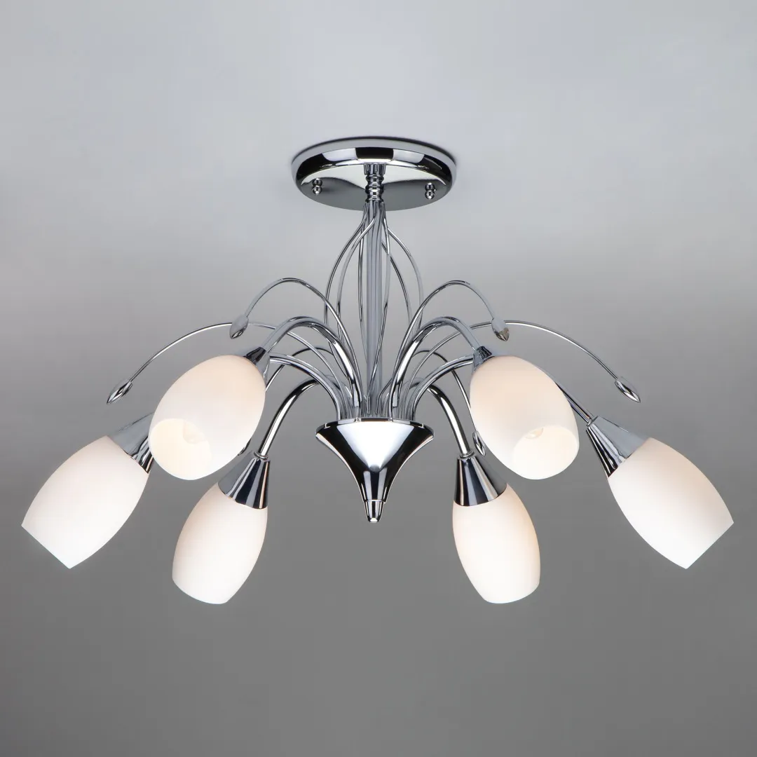 Организовать качественное освещение вам поможет современная потолочная люстра со стеклянными матовыми плафонами 22080/6 хром из коллекции Ginevra. Ее плавные линии и глянцевое хромированное покрытие создают ощущение легкости и современной роскоши. Люстра идеально подходит для тех, кто ценит стиль и функциональность.