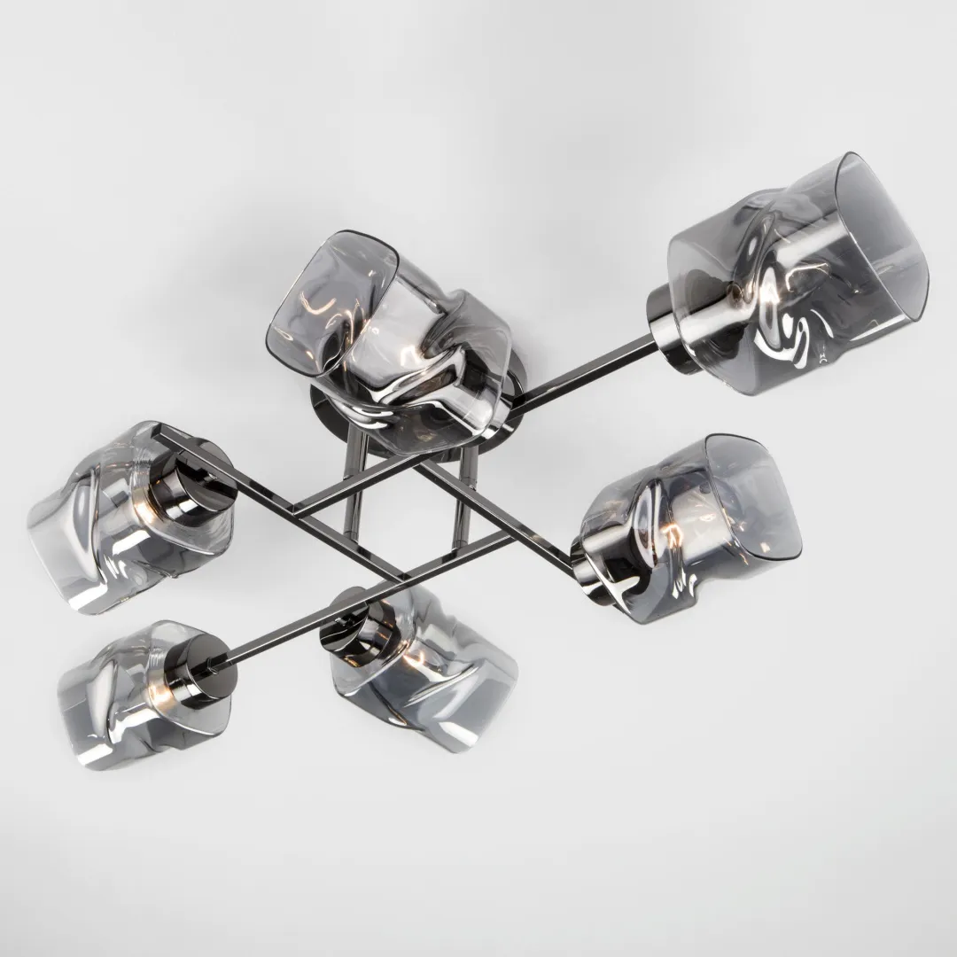 Создать качественное освещение вам поможет современная классическая шестирожковая потолочная люстра со стеклянными плафонами в цвете черный жемчуг. Простые минималистичные формы и сдержанные тона станут прекрасным дополнением для вашего помещения.