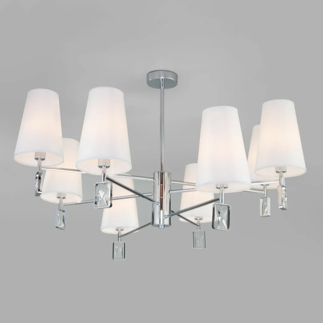 В люстре рекомендуется использовать сменные лампы накаливания с цоколем Е14 с максимальной мощностью 40 Вт. В производстве люстры использовали высококачественный метал с надежным защитным покрытием и хрусталь с изящной огранкой.