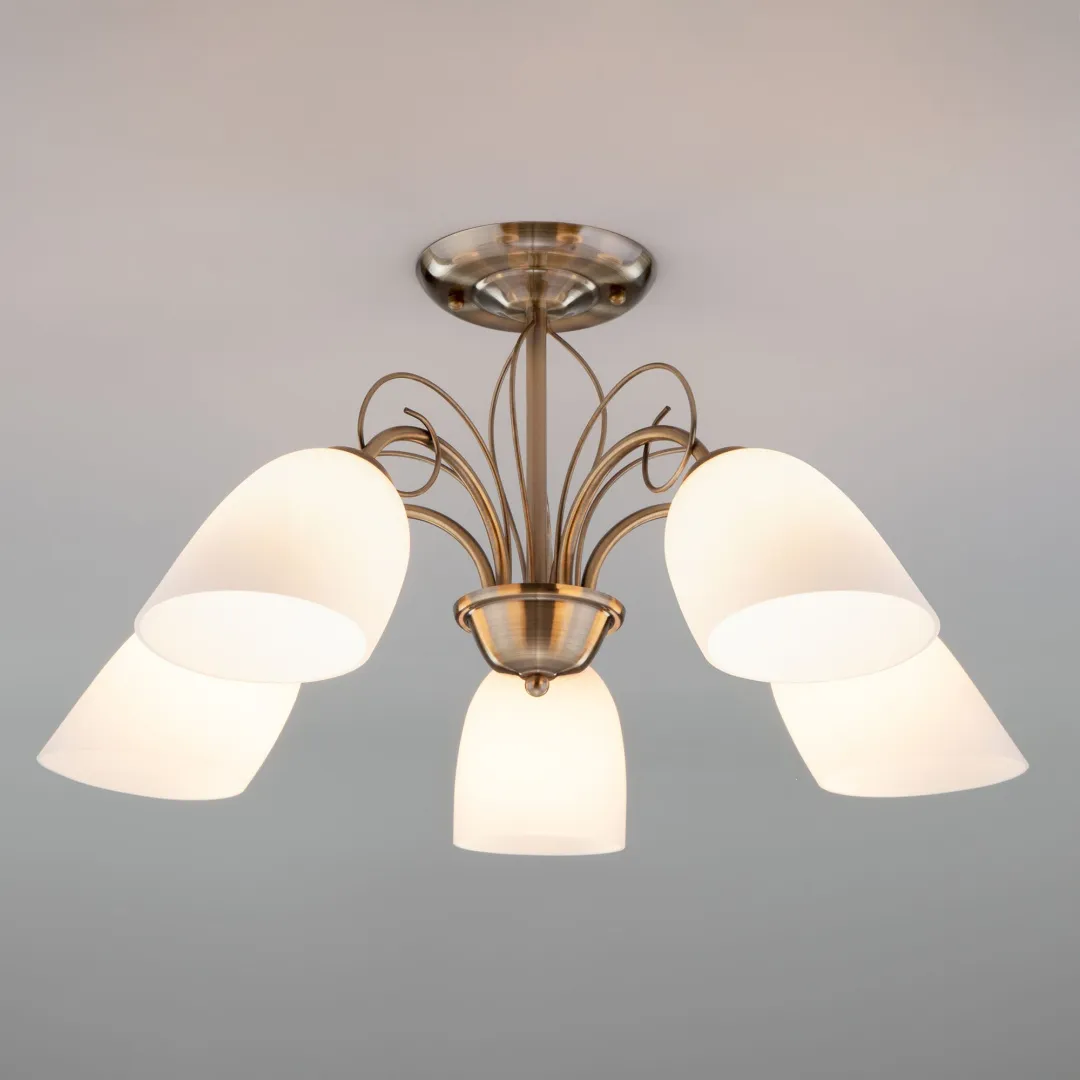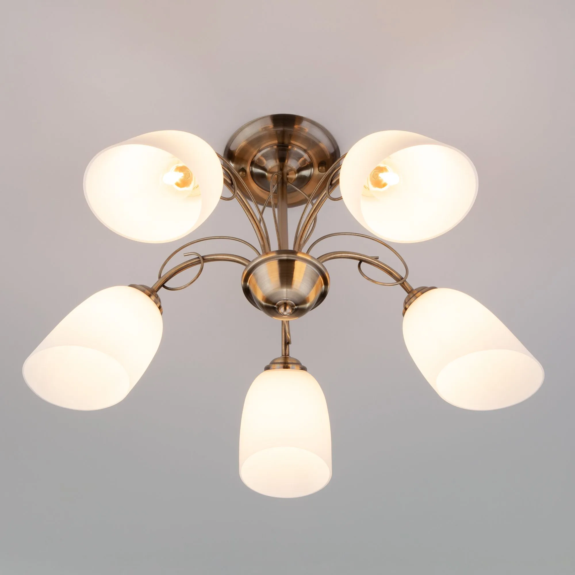 Люстра со стеклянными плафонами 30107/5 античная бронза из коллекции Stefanie предназначена для создания основного освещения в современных и классических интерьерах. Она привнесет в ваш дом нотку классического шарма и теплого света, а изысканный дизайн, сочетающий плавные линии и матовое стекло, создаст уютную атмосферу в любой комнате. Люстра подходит для различных типов помещений и рассчитана на площадь освещения 10 м².
