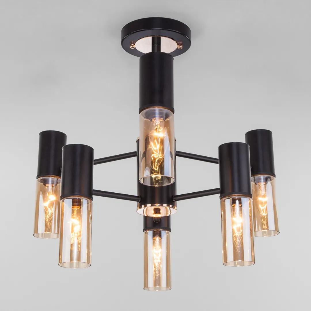 В шестирожковой люстре используются сменные лампы с цоколем E14, рассчитанные на максимальную мощность 40 Вт. В производстве люстры использован высококачественный металл с надежным защитным покрытием и закаленное стекло.