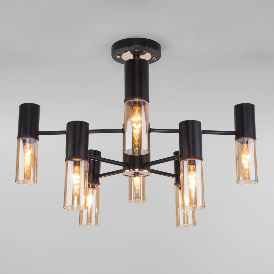В восьмирожковой люстре используются сменные лампы с цоколем E14, рассчитанные на максимальную мощность 40 Вт. В производстве люстры использован высококачественный металл с надежным защитным покрытием и закаленное стекло.