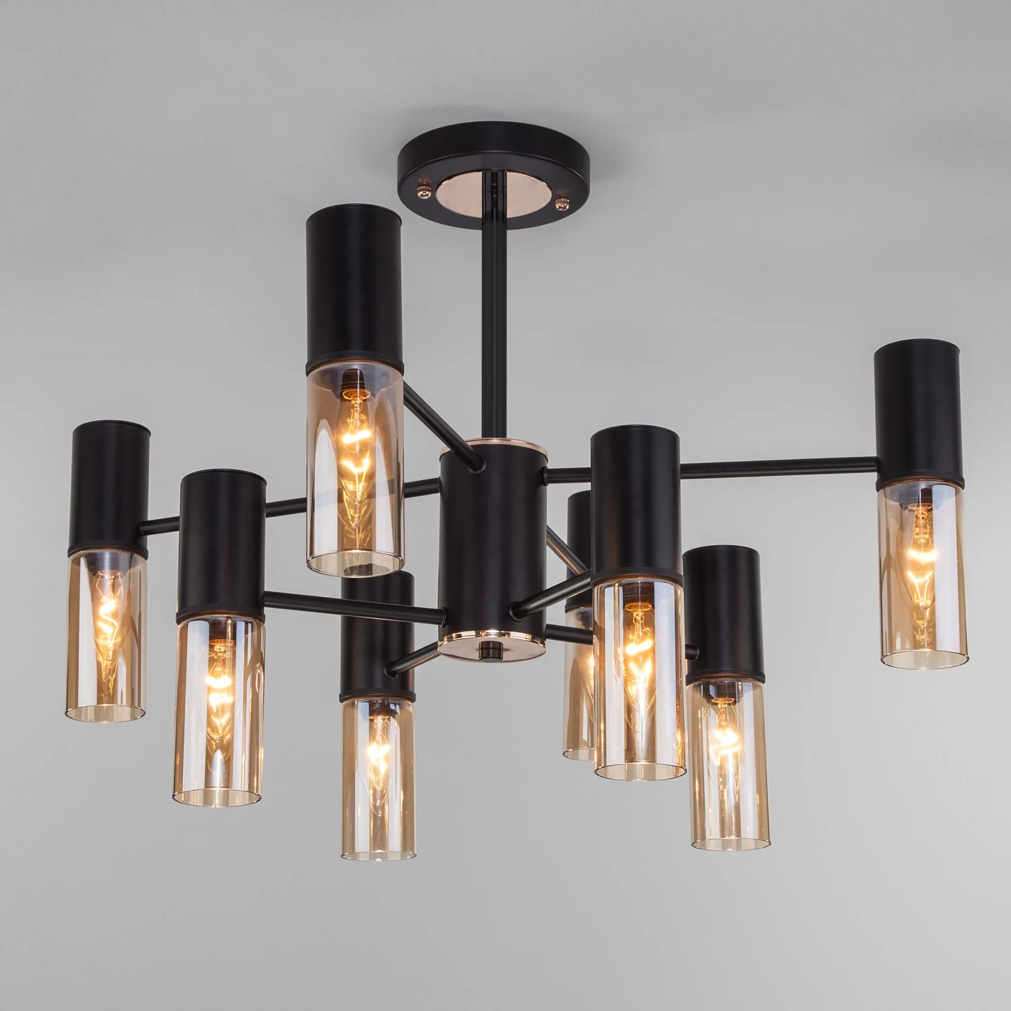 Преобразить ваше потолочное пространство и организовать качественное освещение на площади 16 м кв. поможет стильная люстра в стиле loft. Строгий внешний вид и конструктивная простота форм привнесут в современный интерьер индустриальный стиль, а гармоничный цветовой тандем из черного и бронзы подчеркнет его.