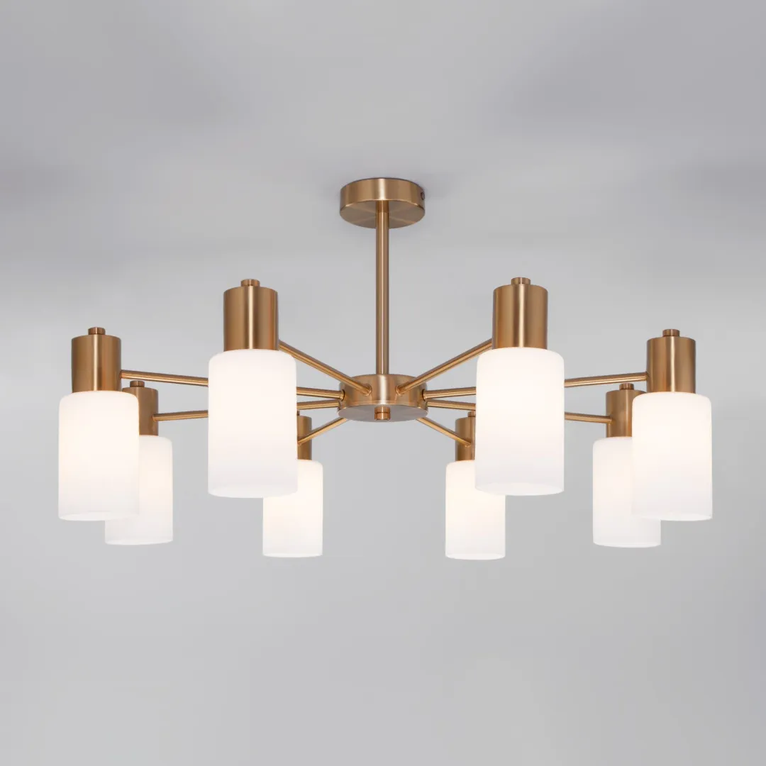 Преобразить ваше потолочное пространство и создать качественное освещение на площади 14 м кв. поможет стильная люстра в стиле loft. Строгий внешний вид и конструктивная простота форм добавят в современный интерьер индустриального стиля, а гармоничный цвет латунь подчеркнут его.