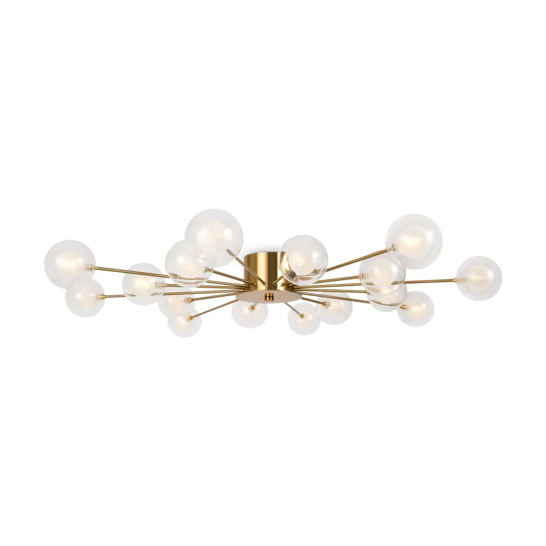 Celebrity ー это изобретательное произведение искусства. Источник света представлен двумя видами плафонов: двойное стекло и акриловое стекло в сочетании с латунной металлической окантовкой. Эти маленькие огоньки раскинуты по всей площади светильника и создают ощущение, что в вашей квартире есть свое небольшое звёздное небо. Плафоны расположены на концах арматур, которые по кругу выходят из цилиндра в центре.   Материал плафонов: стекло, акрил. Цвета арматуры: черный и золото.