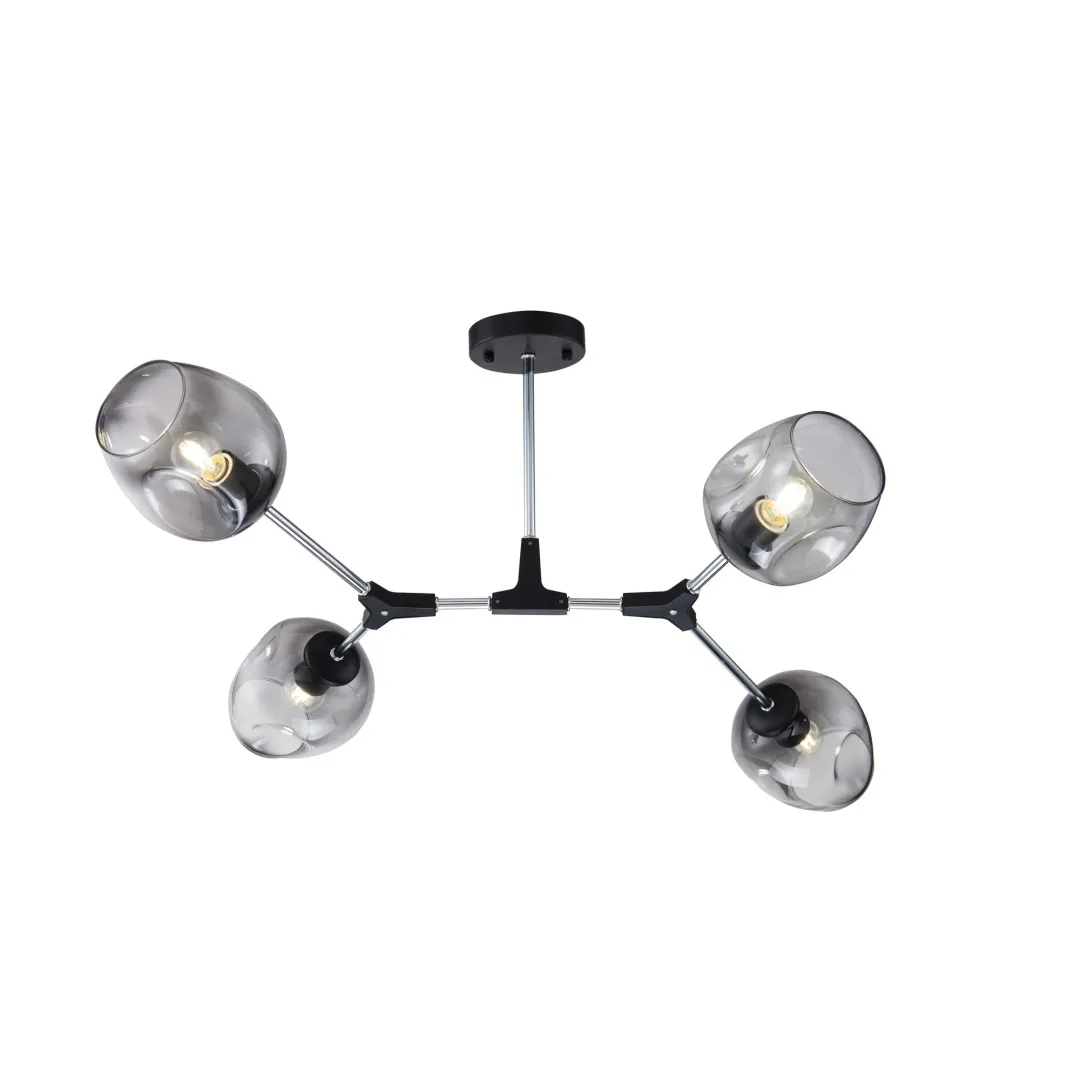 Серия светильников в современном стиле. Металлическая арматура черного цвета, плафоны из стекла с легкой дымчатой тонировкой. Благодаря небольшой высоте светильники серии Desi подходят для помещений с невысокими и низкими потолками.