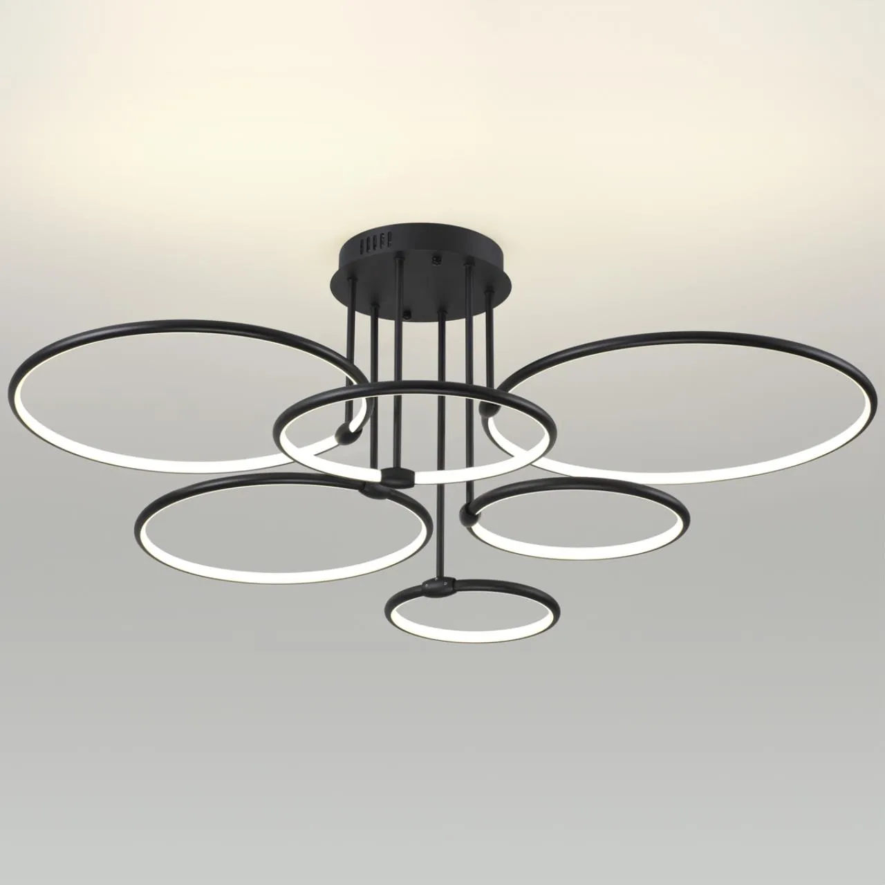 Ursula - стильная светодиодная люстра, состоящая из нескольких колец разного размера, расположенных на разной высоте относительно друг друга. Люстра обладает высокой мощностью и оснащена пультом ДУ, что добавит разнообразия в сценарии освещения. Доступна в трех вариантах расцветки, что позволяет использовать ее как в минималистичном, так и более требовательном к деталям интерьере.