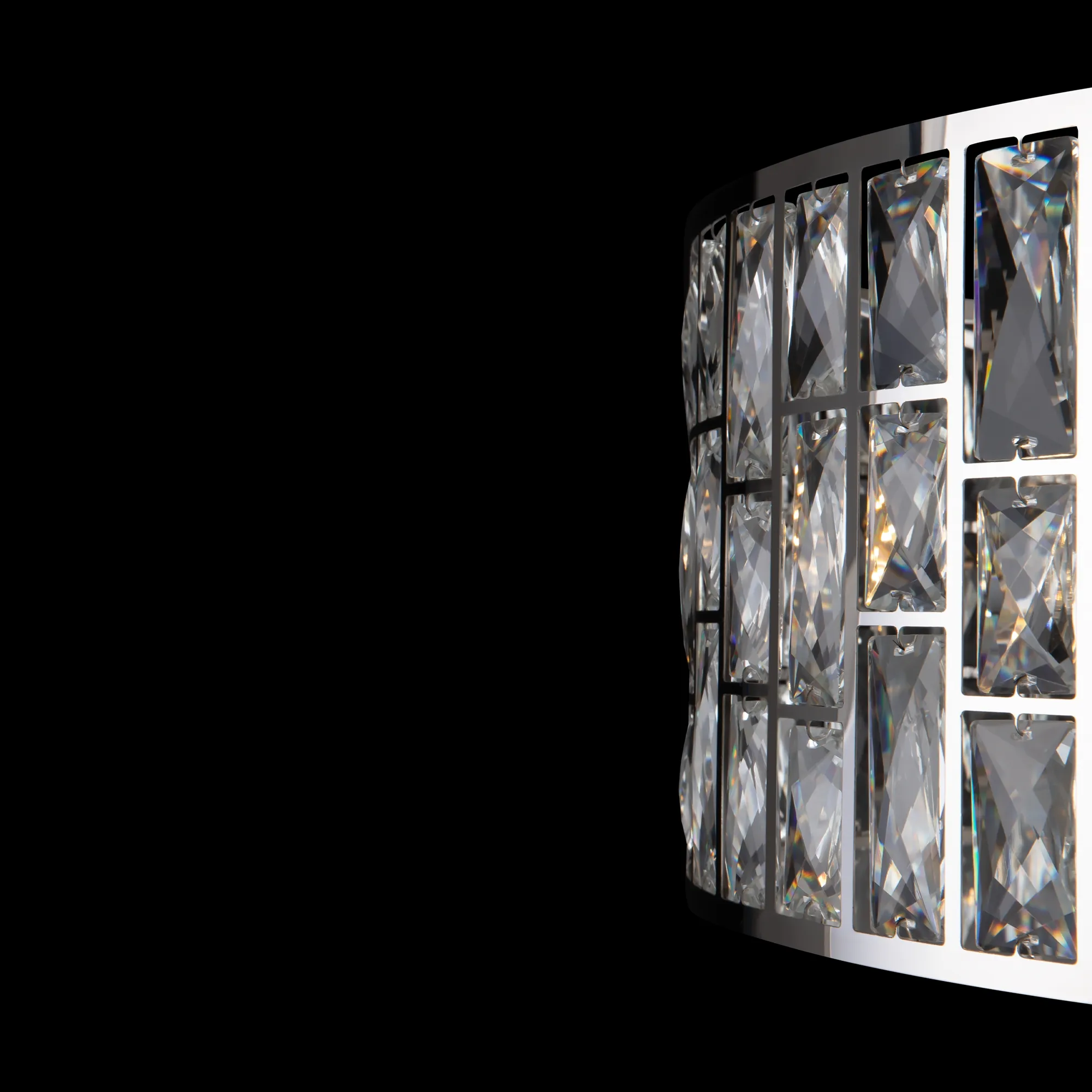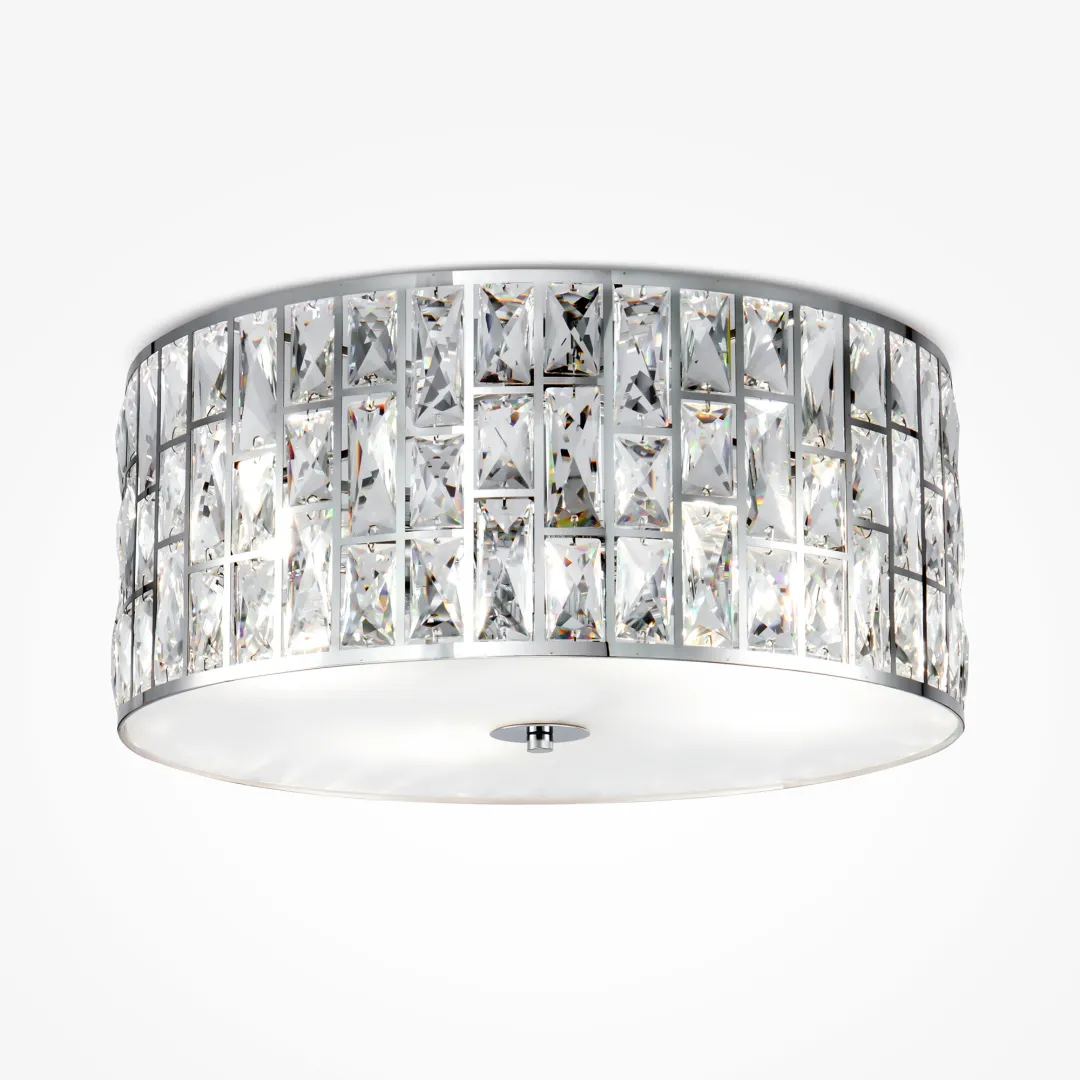 Потенциал универсальных светильников серии Gelid полностью раскрывается как в классических, так и современных интерьерах. Каркас абажура изготовлен из полированного металла с прорезанными прямоугольными окнами, в каждое из которых установлен граненый кристалл. На потолочных светильниках установлен рассеиватель из матового стекла. Высота подвесных светильников регулируется длиной цепи.