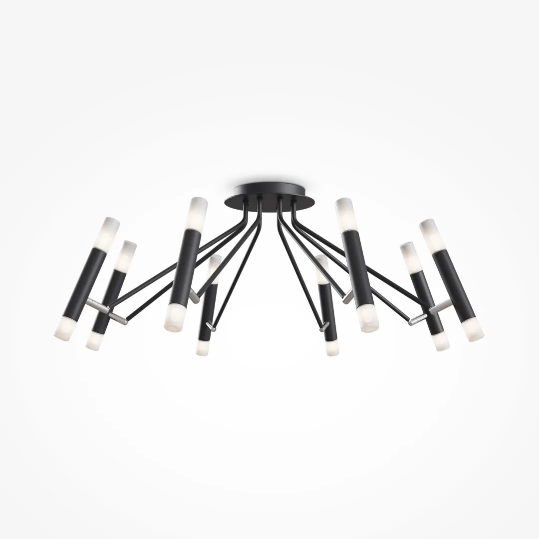 Динамичный дизайн светильников серии не останется незамеченным и станет эффектным акцентом в современном интерьере. Источники света размещены парно в цилиндрах-плафонах, каждый из которых закреплен на тонком металлическом каркасе и благодаря шарниру вращается на 340° по горизонтали и 90° по вертикали. Есть возможность видоизменять дизайн светильника, создавая уникальную композицию и формируя множество локальных сценариев освещения. Рассеиватели из матового стекла смягчают свет ламп и дарят комфортный световой поток. Каркас изготовлен из металла и выкрашен в черный матовый цвет. Серия содержит подвесные и потолочные модели, бра и торшеры. Все светильники оснащены цоколями для ламп G9. Комбинируйте их в группы для создания эксклюзивных световых сценариев.