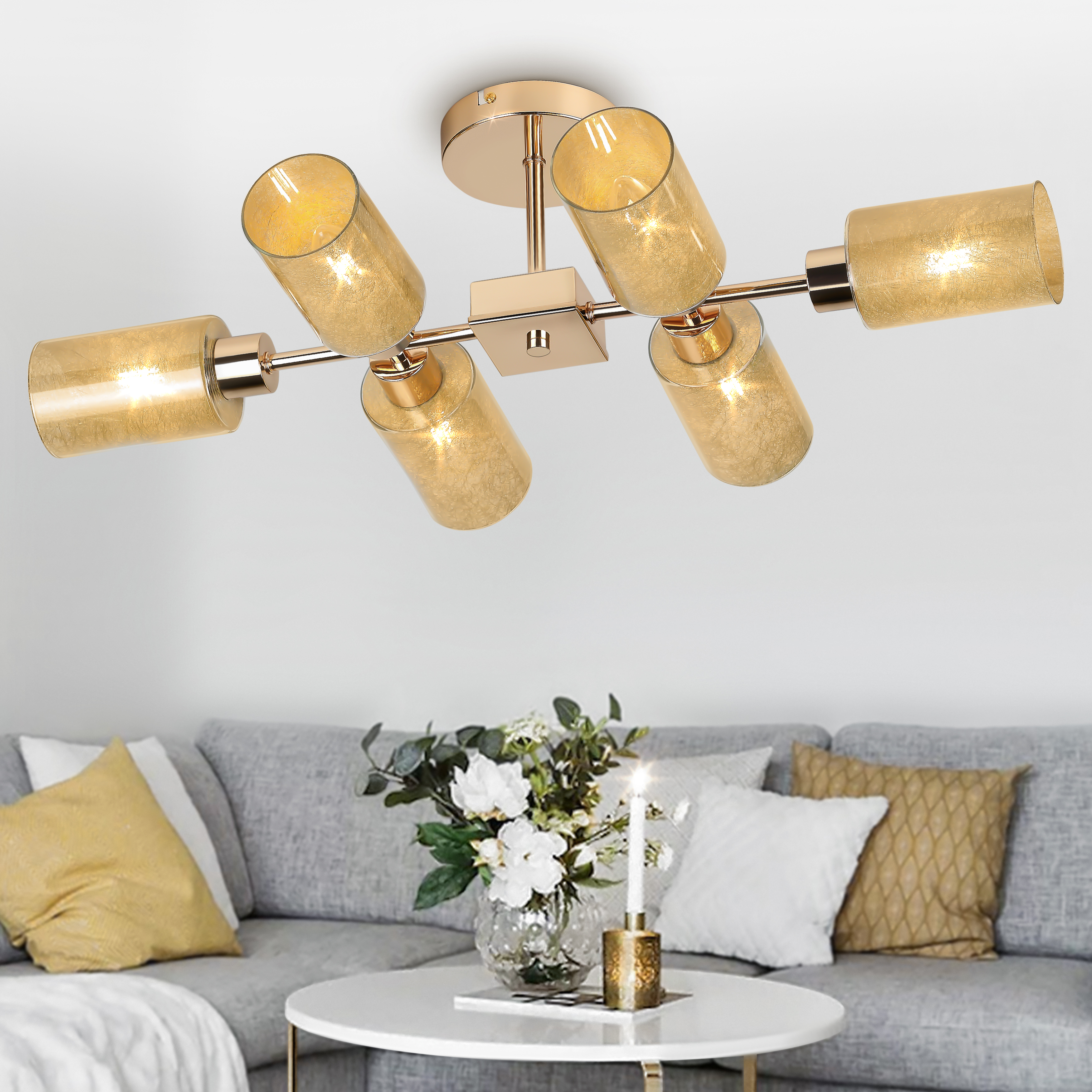 <p>Мягкое теплое тонирование круглых плафонов люстры Katarine помогает создать в комнате уютную расслабляющую атмосферу. Шесть ламп Е14 мощностью 40 Вт равномерно осветят площадь от 18 м². Эта модная люстра на потолок совместима как с обычными, так и со светодиодными лампочками.</p>