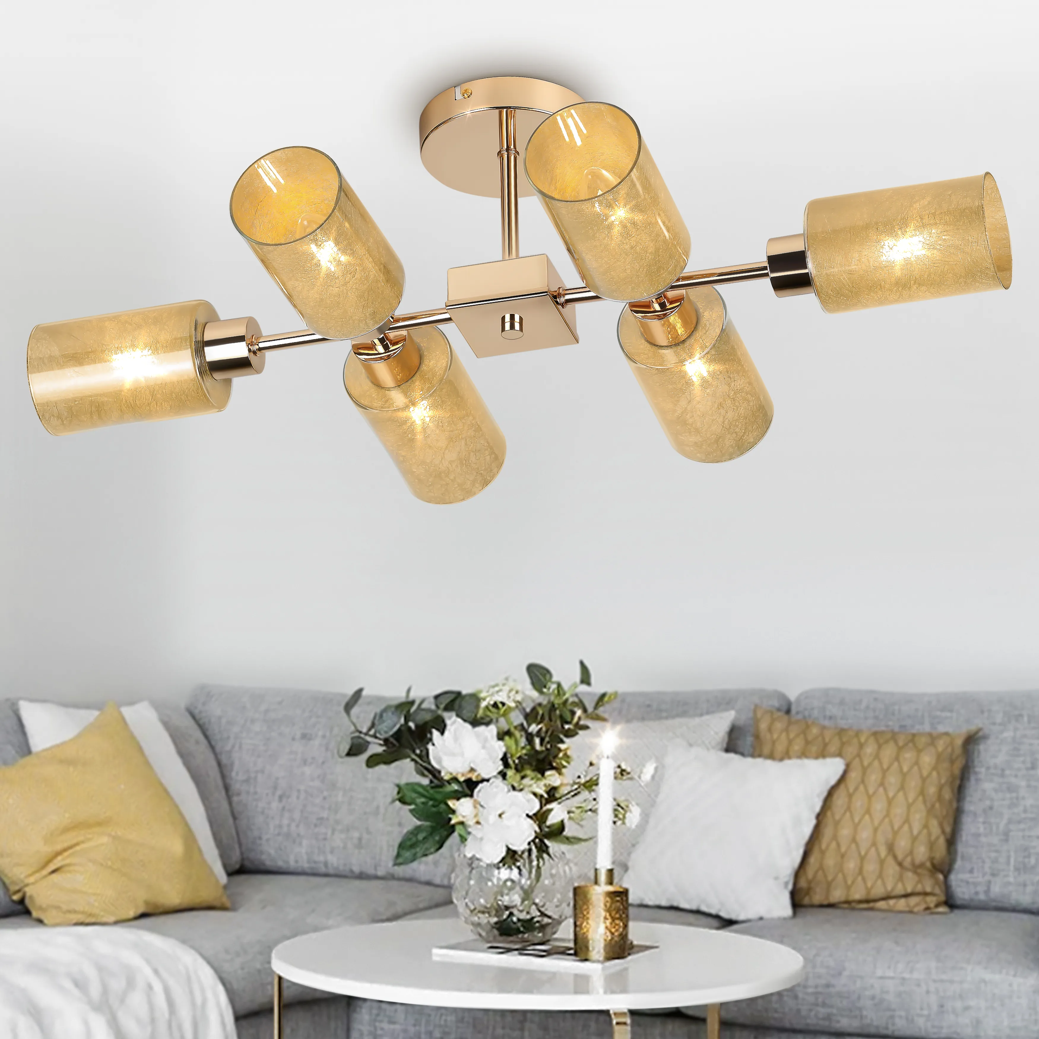 <p>Люстры потолочные Katarine от итальянского бренда Rivoli отличает минималистичная арматура благородного оттенка золота. Шесть стеклянных плафонов дизайнерской геометричной формы делают подвесные люстры Rivoli Katarine оригинальными и запоминающимися. Такие люстры стоит купить в современную гостиную, спальню, на кухню, в квартиру-студию или загородный дом. Они выглядят одновременно сдержанно и ультрамодно.</p>