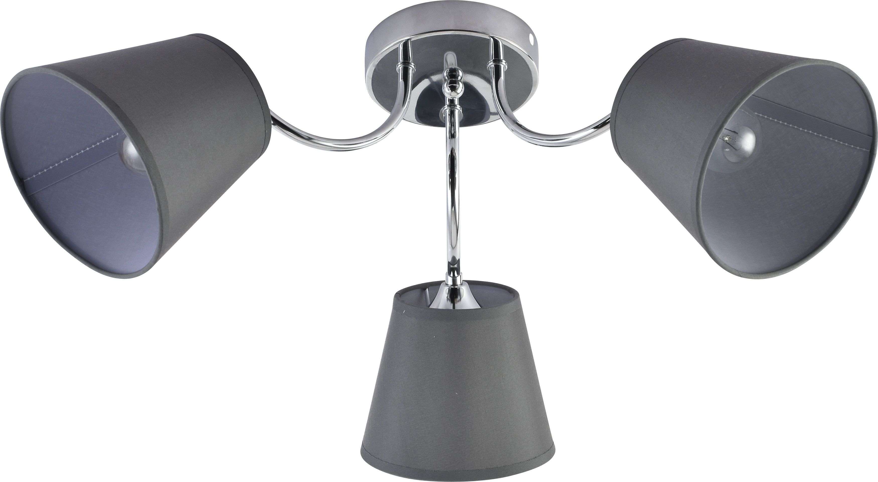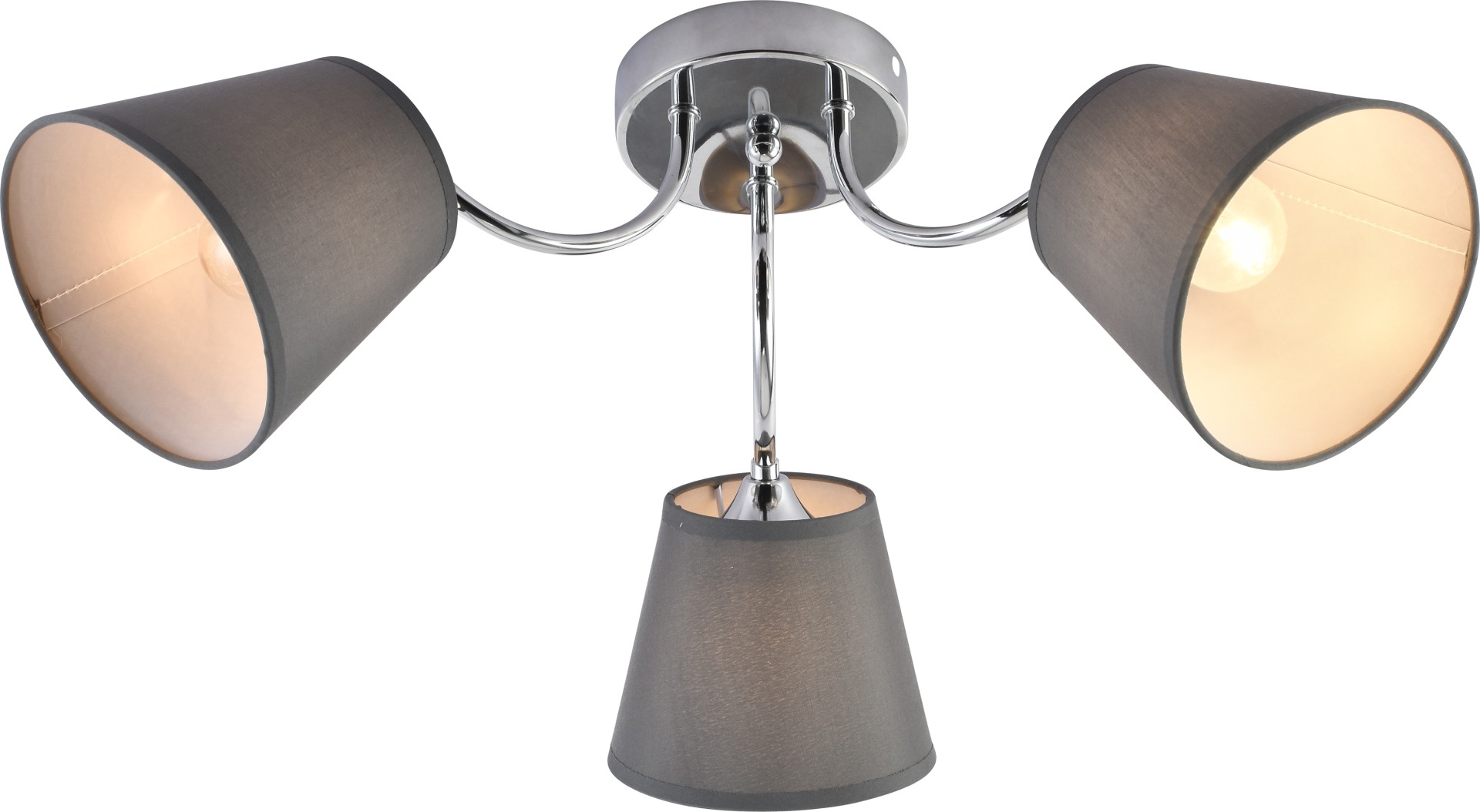 Данная люстра с тремя тканевыми серыми плафонами освещает площадь до 9 м2. Прочный и лёгкий металлический корпус, классическая форма плафонов, интеллигентный сдержанный дизайн.