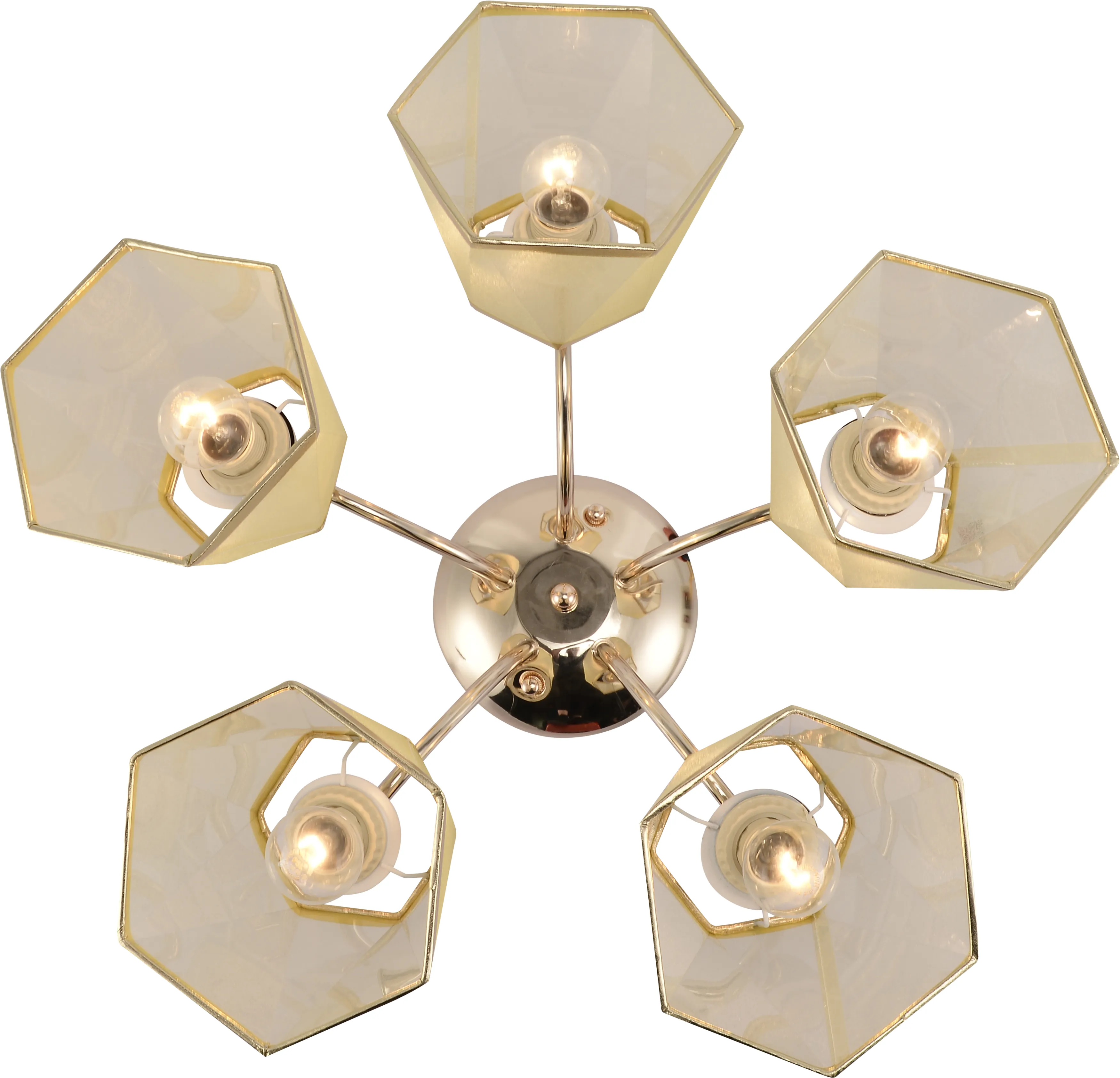 <p>Люстра золотого цвета с 5 плафонами, перетянутыми золотистой тканью - Rivoli Alyssa (арт. 9168-305). Металлический корпус люстры имеет стойкое порошковое покрытие, которое сохранит красивый золотой цвет корпуса люстры на долгое время. Трапециевидные плафоны направляют свет ламп вниз для создания яркого качественного освещения в комнате. Люстра потолочная Rivoli Alyssa освещает площадь до 15 м2. Эту модель стоит купить, если вы ищете красивые люстры в гостиную, люстры в спальню. Золотистая абажурная ткань люстры имеет полупрозрачную текстуру, прекрасно пропускает свет. В дополнение к данной 5-рожковой люстре в коллекции Alyssa итальянского бренда Rivoli представлена люстра с 3 плафонами – арт. 9168-303.</p>