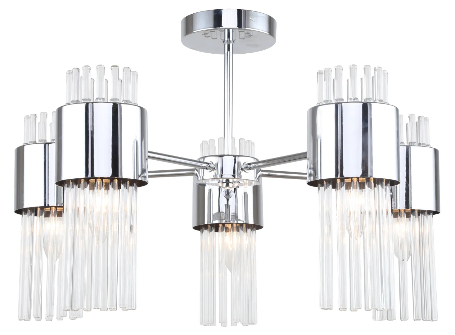 5-рожковая люстра на штанге в цвете хром, с трубчатыми стеклянными плафонами. Люстра потолочная применяется с 5 лампами Е14 мощностью 40 Вт, освещает площадь до 15 м2. Люстра с цилиндрическими плафонами из стекла будет удачно смотреться в гостиной, в спальне, на кухне, в кабинете, в загородном доме. Люстры и светильники коллекции Rivoli Deborah подходят для оформления пространств сегмента horeca – рестораны, кафе, гостиницы. Эти люстры потолочные заказывают в интерьеры театров, концертных залов, фойе общественных пространств. В коллекции Rivoli Deborah: люстра под 5 ламп - арт. 3148-305, люстра под 7 ламп - арт. 3148-307, светильник подвесной - арт. 3148-201, светильник настенный - арт. 3148-401.