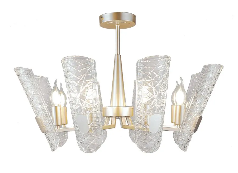 Рожки люстры Dolores направлены вверх и напоминают свечные канделябры. Стекло люстры на кухню Dolores Rivoli отличается аккуратным объемным рисунком. В геометричности узора на стекле люстры красиво играют световые лучи. Металл этой современной люстры имеет стойкое гальваническое покрытие. Люстры Dolores подходят на натяжной потолок. В коллекции есть аналогичные люстры под 5 ламп - арт. 4087-305.