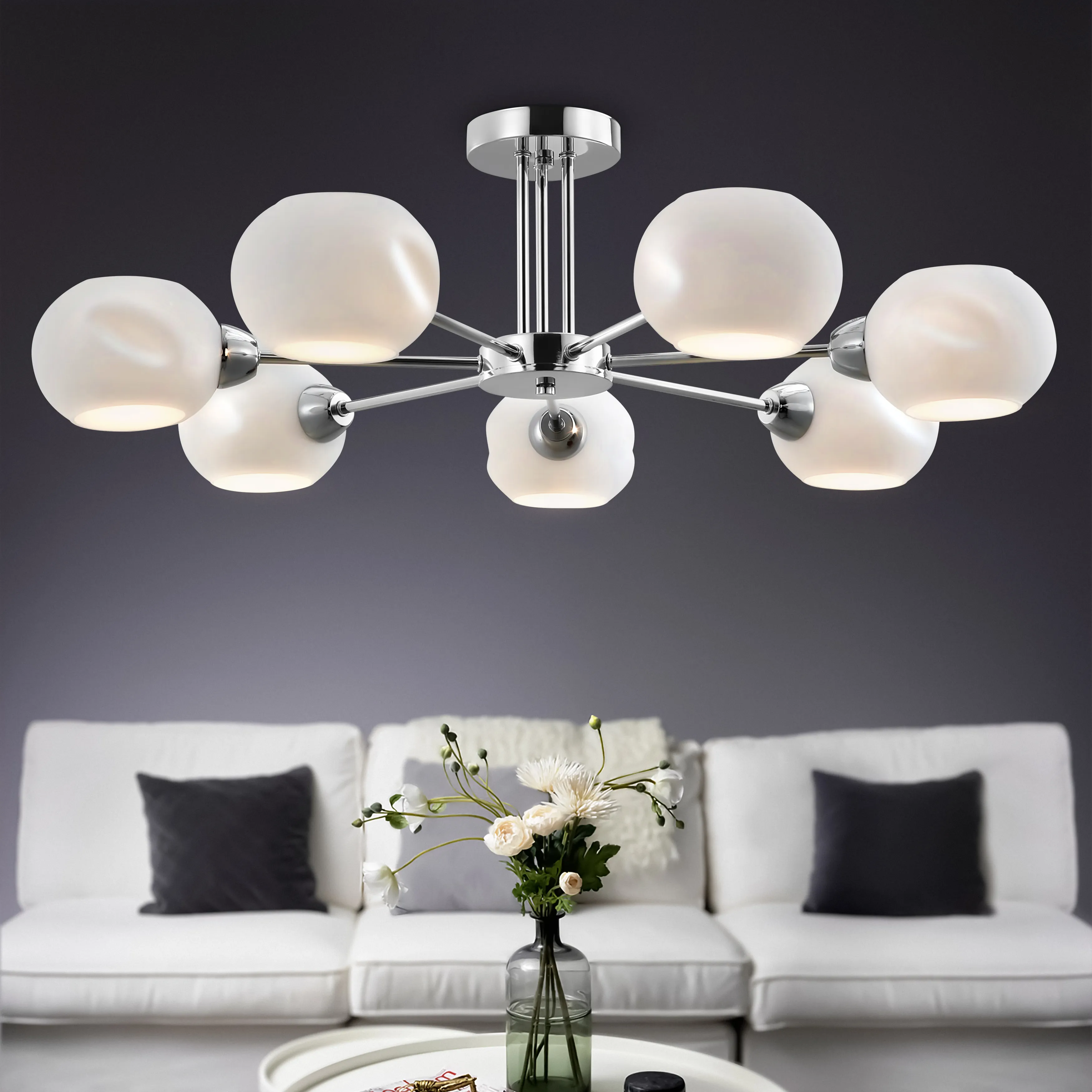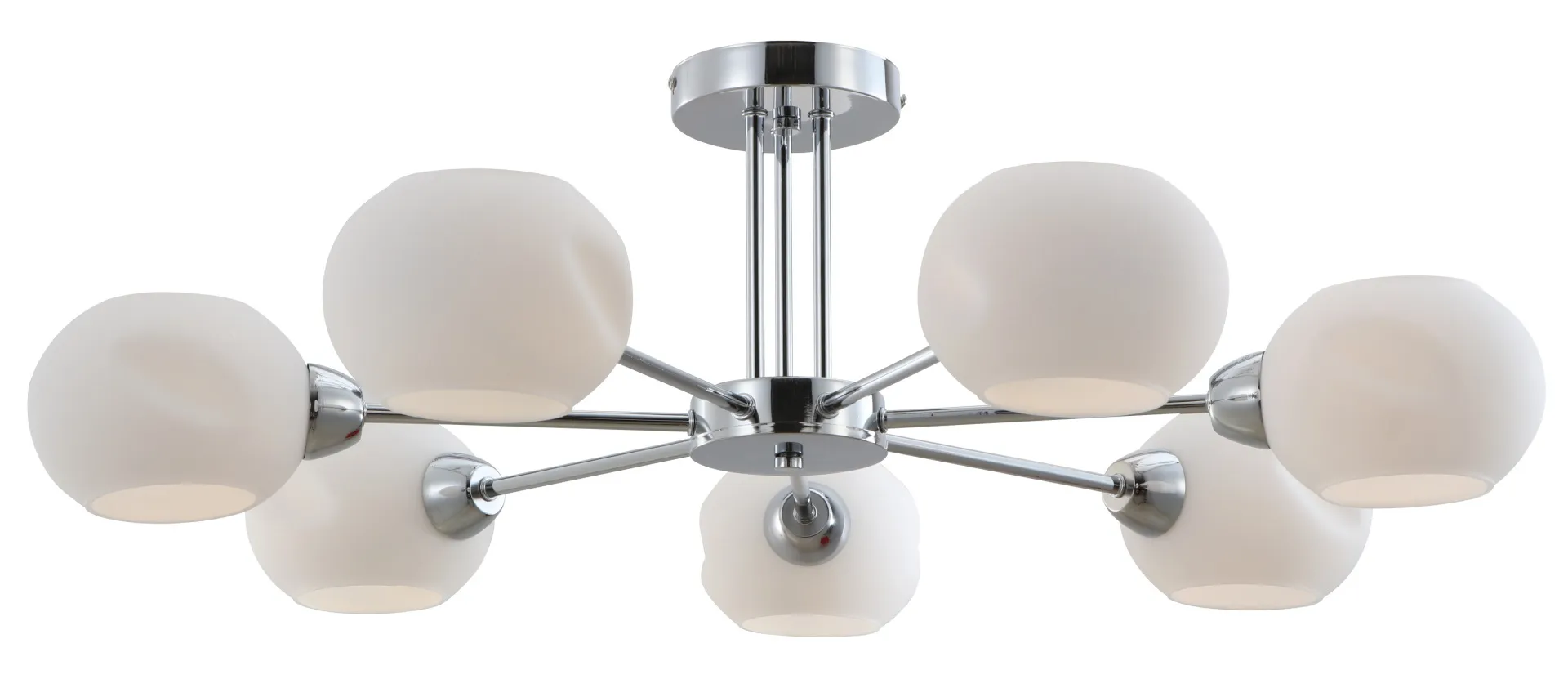 <p>Люстра потолочная на штанге с 7 плафонами, расположенными по кругу на одинаковом расстоянии друг от друга. Матовые стеклянные плафоны смягчают яркость света, делая его комфортным для глаз. Люстра на потолок Rivoli Doris создаёт равномерное освещение. Освещаемая площадь люстры – до 21 м2. Отличный вариант люстры в современную квартиру, люстры в загородный дом.</p>