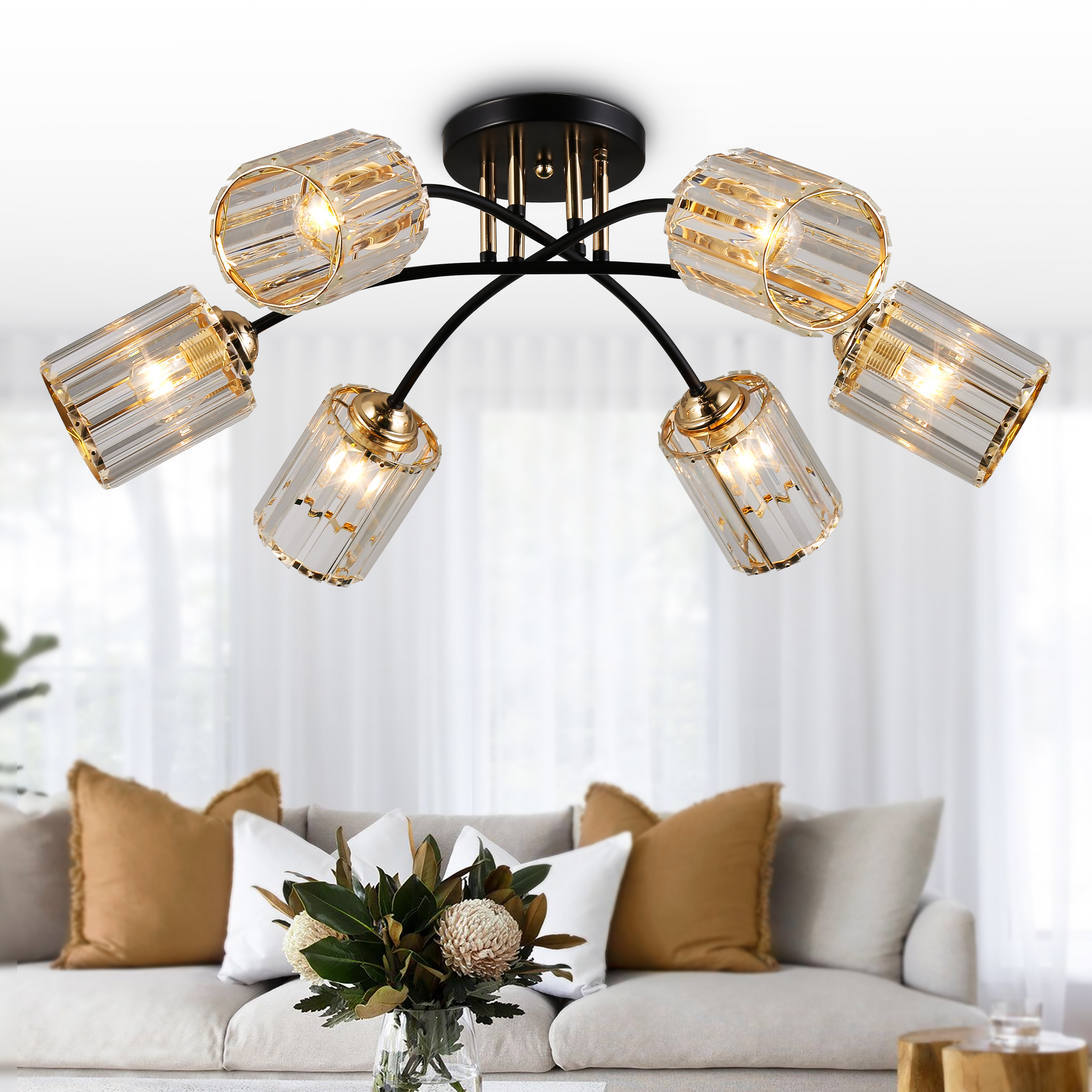 <p>Rivoli Emanuelle (арт. 9101-306) - 6-рожковые люстры с фигурными стеклянными плафонами, имеющими геометричное рифление. Арматура этих современных люстр примечательна своим комбинированным окрашиванием в цвета черный и золото. Прозрачные плафоны декорированы золотистыми элементами.</p>