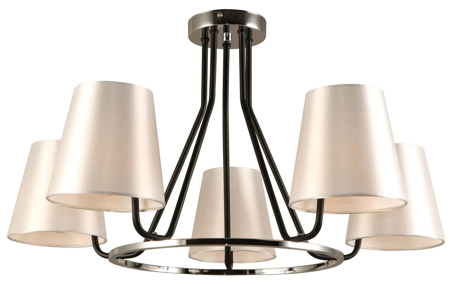 <p>Rivoli Florence (арт. 2086-305) – классическая люстра 5-рожковая с элементами современного замкового стиля. Люстры дизайнерские Florence от итальянского бренда Rivoli отличаются лаконичностью корпуса. Применяются с лампами Е14 40 Вт. Яркость источников света смягчают тканевые плафоны жемчужно-белого оттенка. Такие люстры создают свет без бликов, обеспечивают комфорт для глаз. В коллекции Florence Rivoli представлены также 7-рожковые люстры (арт. 2086-307) и настенные светильники (арт. 2086-401). Арматура современной люстры Rivoli Florence окрашена в цвета чёрный и хром гальваническим способом, гарантирующим стойкость покрытия и красоту оттенка.</p>