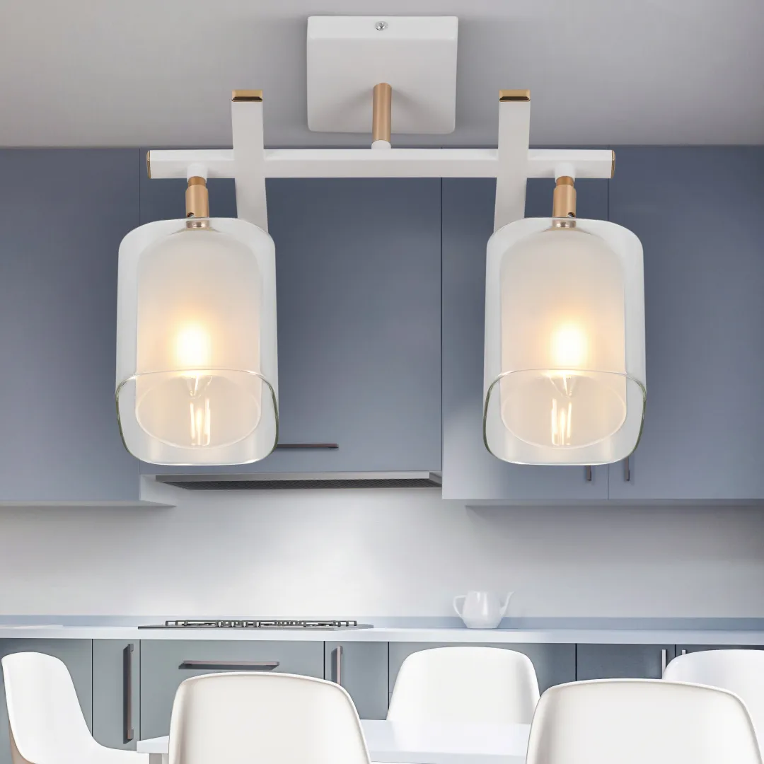Люстры потолочные Helga от итальянского бренда Rivoli являются универсальным решением для интерьеров множества стилей. Данная модель (арт. 3100-302) с двумя плафонами компактный вариант люстры на кухню или люстры в небольшую гостиную.
