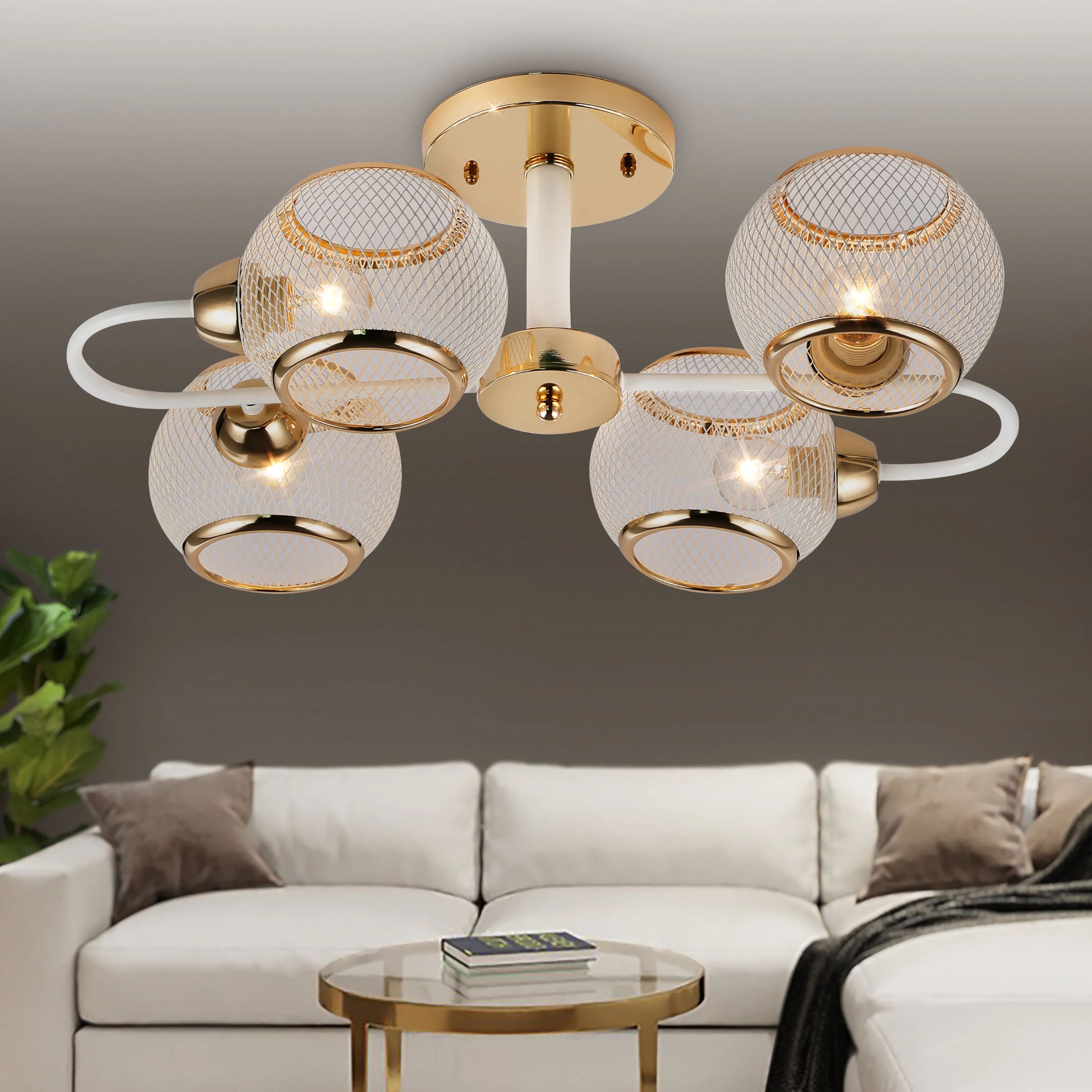 <p>Rivoli Mortifera - коллекция стильных итальянских люстр на невысокий потолок или потолок средней высоты. Дизайнерские люстры Mortifera изготовлены из легкого прочного металла со стойким гальваническим окрашиваем в белый и золотой цвета. Металлические сетчатые плафоны круглой формы обрамлены красивыми золотыми ободками. Основной цвет люстры - белый. Люстры потолочные Mortifera светлые, визуально невесомые, аккуратные. Создают в помещении легкую уютную атмосферу. Такие люстры хороши в гостиную в скандинавском стиле, стоит купить эти люстры в минималистичную спальню, подойдут данные люстры на кухню в светлых тонах.</p>