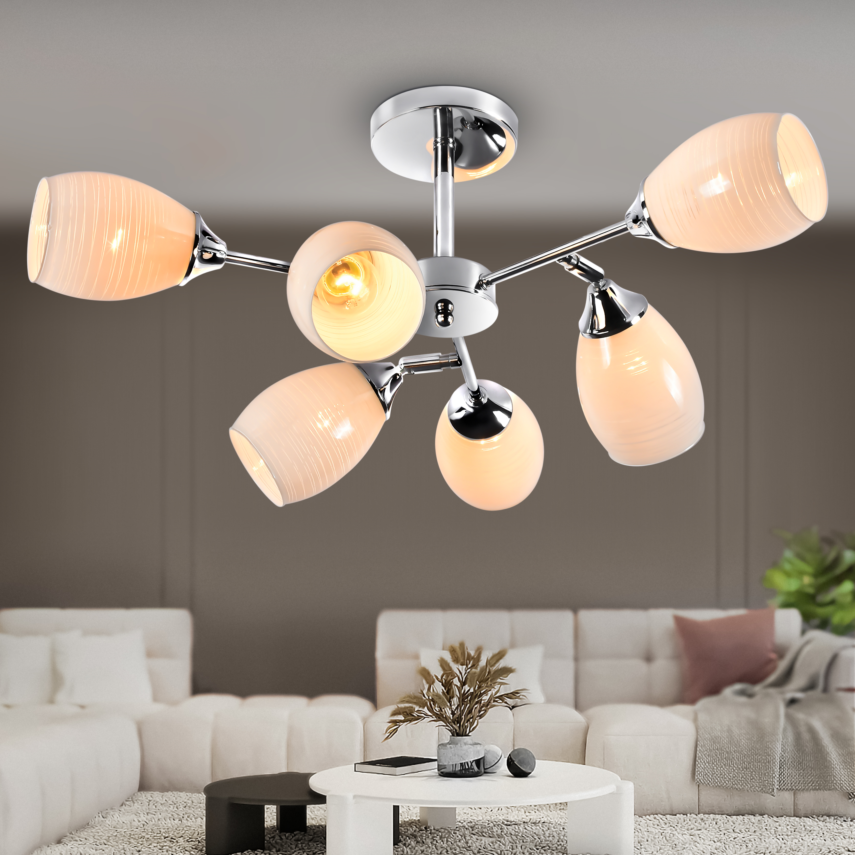 <p>Rivoli Sibylle (арт. 9074-306) - 6-рожковая универсальная люстра на потолок жилой комнаты. Корпус люстры изготовлен из легкого прочного металла, 6 плафонов - из красивого декоративного стекла белого цвета. Арматура люстры окрашена в трендовый цвет хром, благодаря чему Rivoli Sibylle смотрится актуально в современных интерьерах - ее точно стоит купить в квартиру после ремонта или в новостройку. Будьте уверены, что прослужат эти люстры потолочные очень долго - они имеют стойкое гальваническое покрытие металла. Спустя годы современные люстры Sibylle будут радовать вас своим блеском и красотой.</p><p>Дизайн люстры в гостиную Sibylle можно назвать сдержанным и приближенным к классическому. Созданные итальянским брендом Rivoli люстры подойдут в спальню - матовые плафоны мягко распределят световой поток. Освещаемая площадь 18 м² оптимальна, чтобы заказать такие люстры на кухню, в студию, загородный дом. Можно вкрутить обычные или светодиодные лампы с распространенным цоколем Е27 (мощность - 60 Вт).</p>