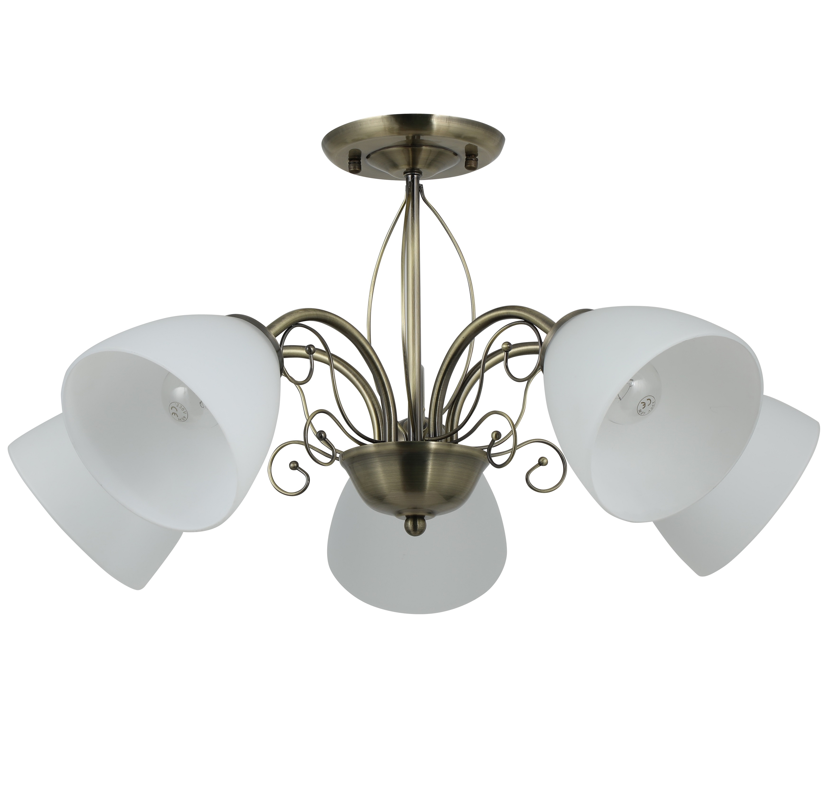 Потолочная 5-рожковая люстра в стиле модерн от итальянских дизайнеров - Rivoli Sue (арт. 9171-305). Корпус люстры из прочного лёгкого металла окрашен в оригинальный оттенок античная бронза и имеет стойкое гальваническое покрытие, сохраняющее безукоризненный внешний вид люстры на годы. Плафоны дизайнерской люстры произведены их стекла матового белого оттенка. Элегантный корпус люстры декорирован тонкими металлическими завитками. В дизайне люстры применены флористические мотивы. Форма стеклянных плафонов люстры напоминает цветки колокольчиков.