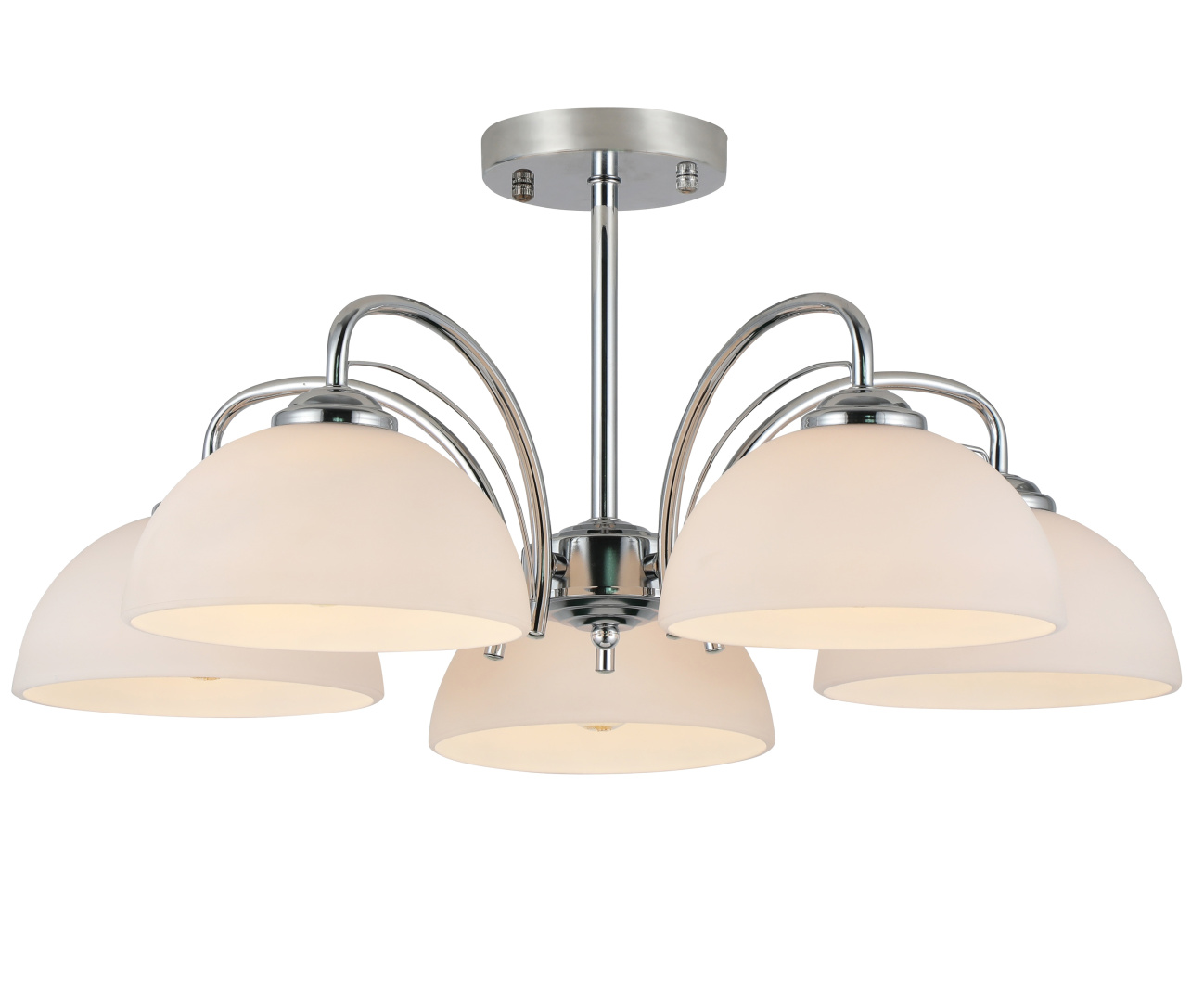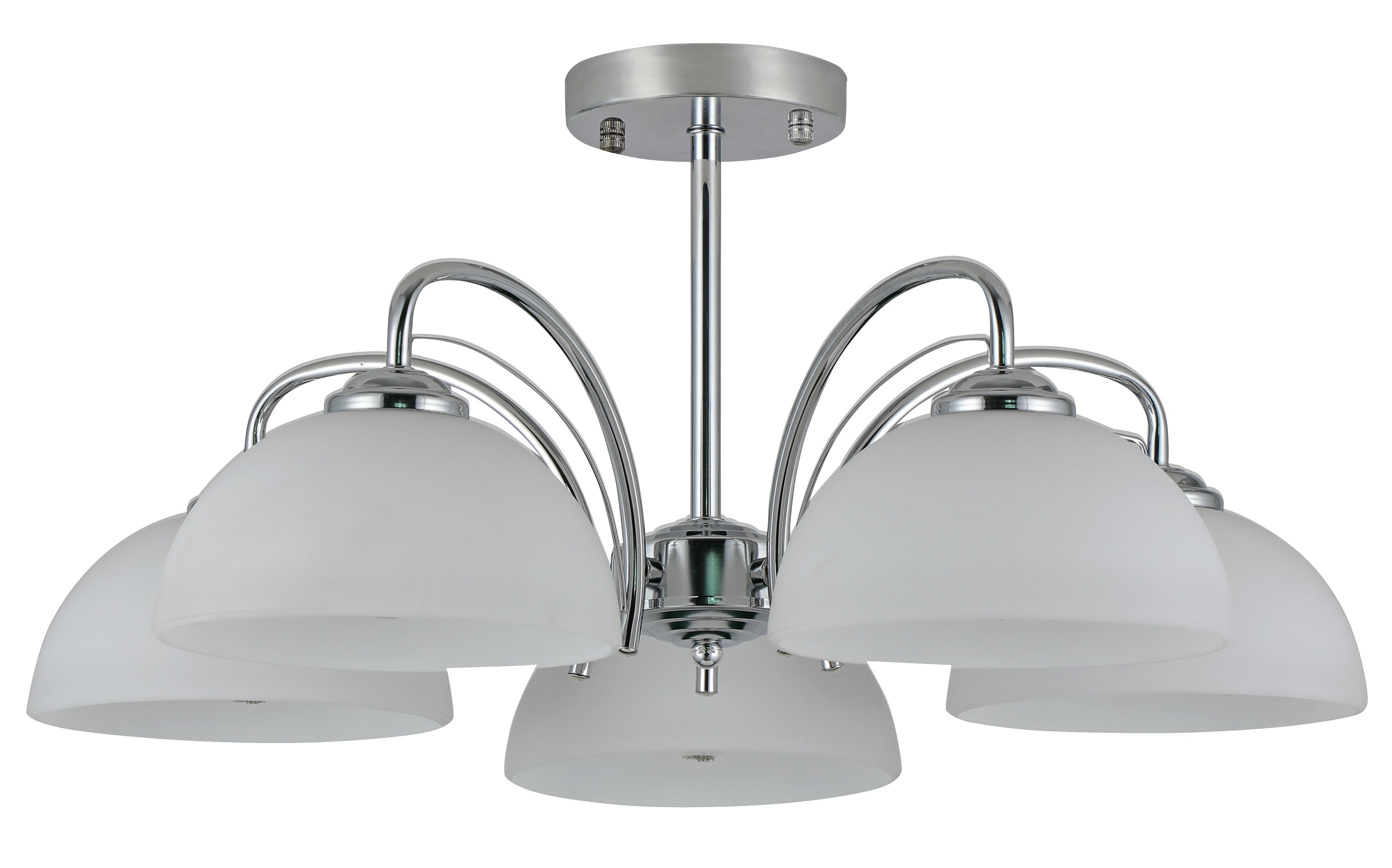 Потолочная люстра на штанге в хромированном металлическом корпусе - Rivoli Tina (арт. 9173-305). Люстра на потолок имеет 5 стеклянных матовых плафонов, в которые необходимо вкрутить лампы Е27 40 Вт. Плафоны этой универсальной современной люстры имеют форму широкого колокольчика, дают много света. Освещаемая площадь 5-рожковой люстры Tina итальянского бренда Rivoli – до 15 м2. Коллекцию дополняет модель с освещаемой площадью до 9 м2 – люстра потолочная на штанге с 3 плафонами (арт. 9173-303). А также бра настенное – арт. 9173-401. Хромированные люстры с белыми плафонами – популярное решение для организации основного освещения в жилой комнате.