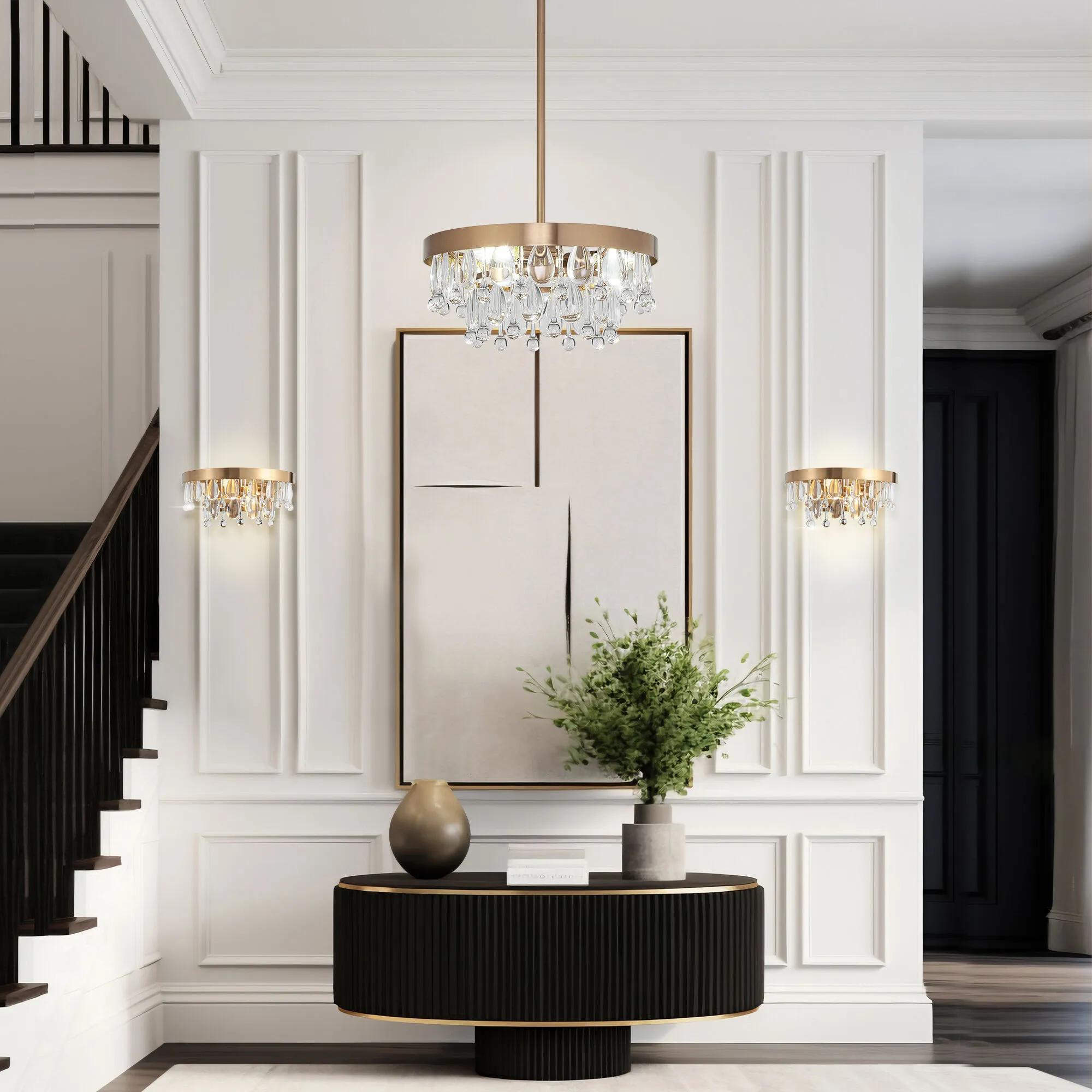 Sophie — это изящная коллекция светильников, которая станет ярким акцентом в помещении. Коллекция декорирована прозрачным хрусталем каплевидной формы, выполняющим функцию рассеивателя. Преломление света в хрустальных подвесах проецирует живую игру лучей на окружающие предметы интерьера. Утонченная арматура в цвете латунь придает роскоши и блеска. В качестве источника света используются сменные лампы с цоколем Е14.