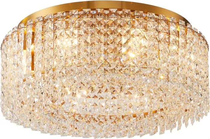 Люстра потолочная из коллекции DELONE выполнена из металла, гальванизированного в цвет бронзы, и декорирована подвесками из прозрачного хрусталя в форме октагон. Светильники коллекции отличает оригинальный дизайн и дополнительный декор из хрусталя, закрывающий источники света снизу.