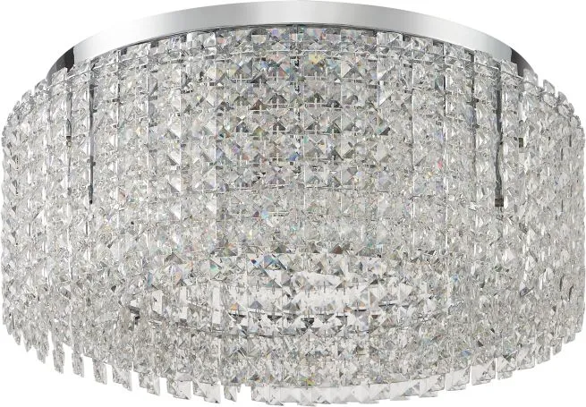 Люстра потолочная из коллекции DELONE выполнена из металла, гальванизированного в цвет хрома, и декорирована подвесками из прозрачного хрусталя в форме октагон. Светильники коллекции отличает оригинальный дизайн и дополнительный декор из хрусталя, закрывающий источники света снизу. Современная форма и высокое качество светильников идеально подойдут как в классические, так и современные интерьеры. Из данной коллекции светильников можно сделать индивидуальный заказ любого цвета и размера.