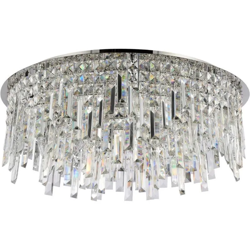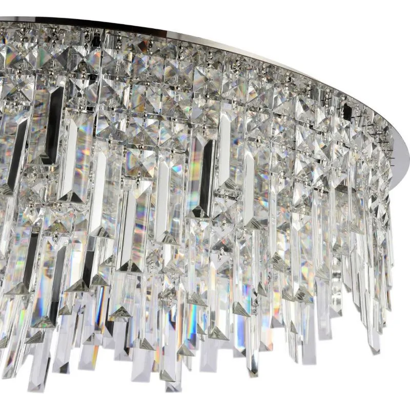 Люстра потолочная из коллекции Dinara выполнена из металла, гальванизированного в цвет хрома, и декорирована прозрачным хрусталем высшей категории прямоугольной и квадратной формы. Потолочная чаша закрыта нержавеющей сталью, отполированной до зеркального блеска. Современная форма и высокое качество светильников идеально подойдут как в классические, так и современные интерьеры.