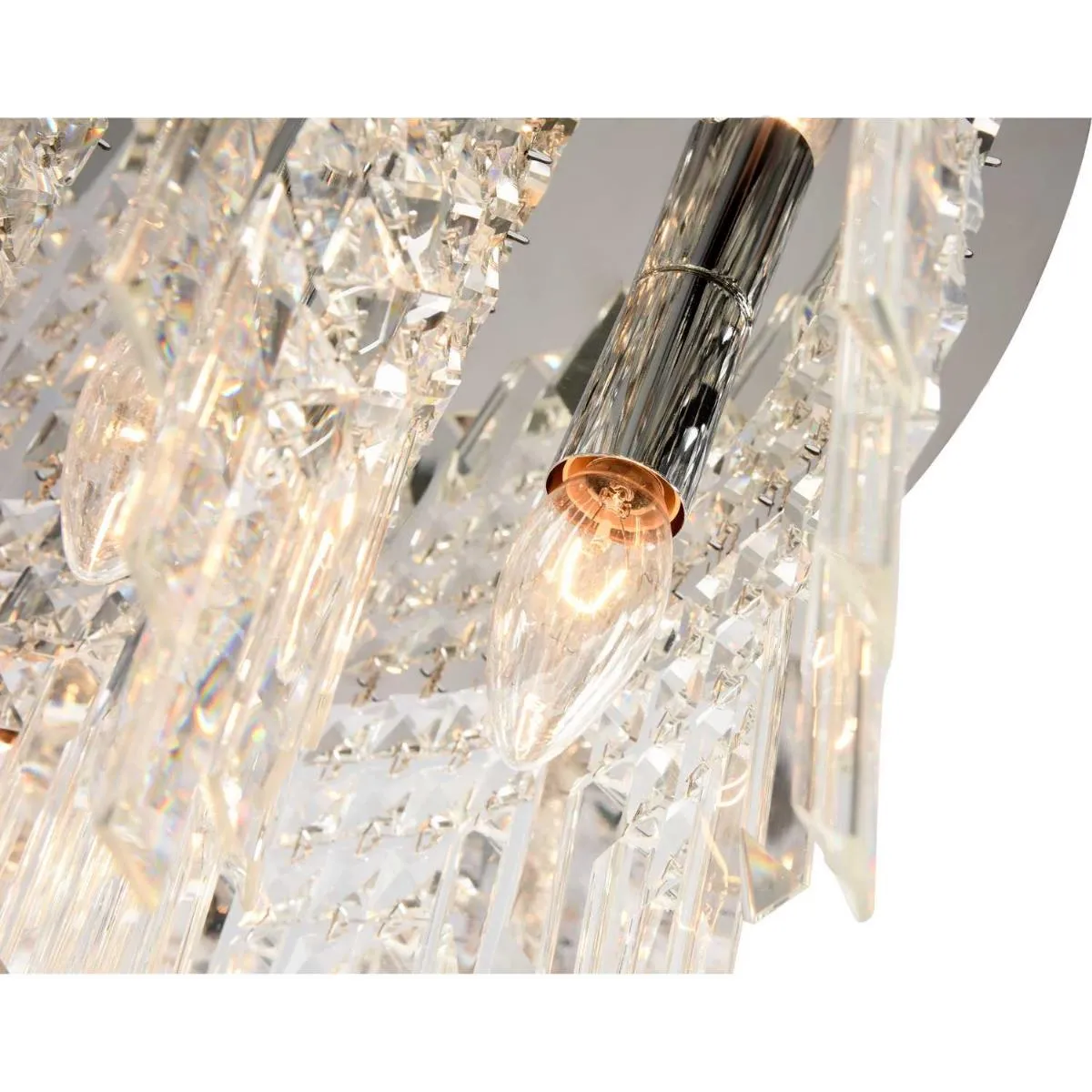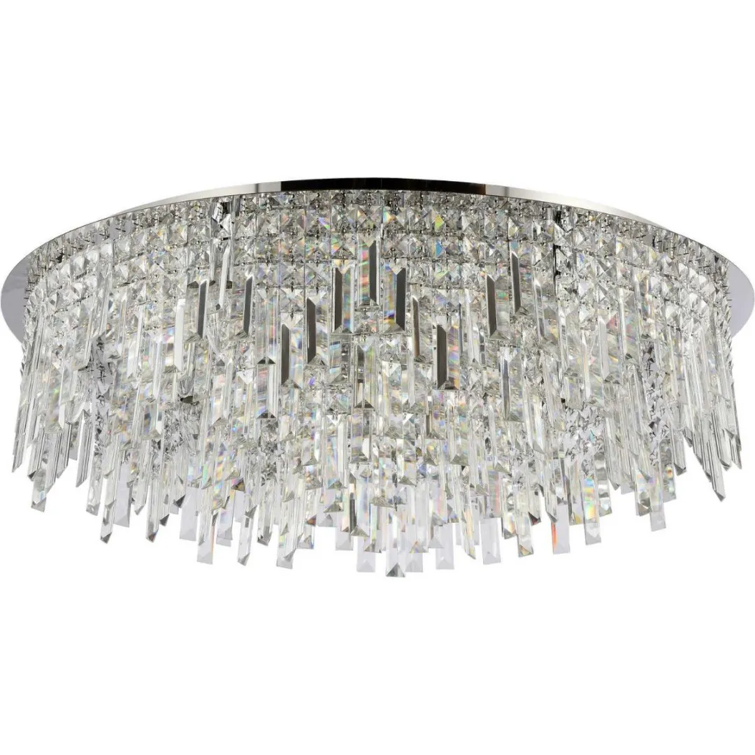 Люстра потолочная из коллекции Dinara выполнена из металла, гальванизированного в цвет хрома, и декорирована прозрачным хрусталем высшей категории прямоугольной и квадратной формы. Потолочная чаша закрыта нержавеющей сталью, отполированной до зеркального блеска. Современная форма и высокое качество светильников идеально подойдут как в классические, так и современные интерьеры.