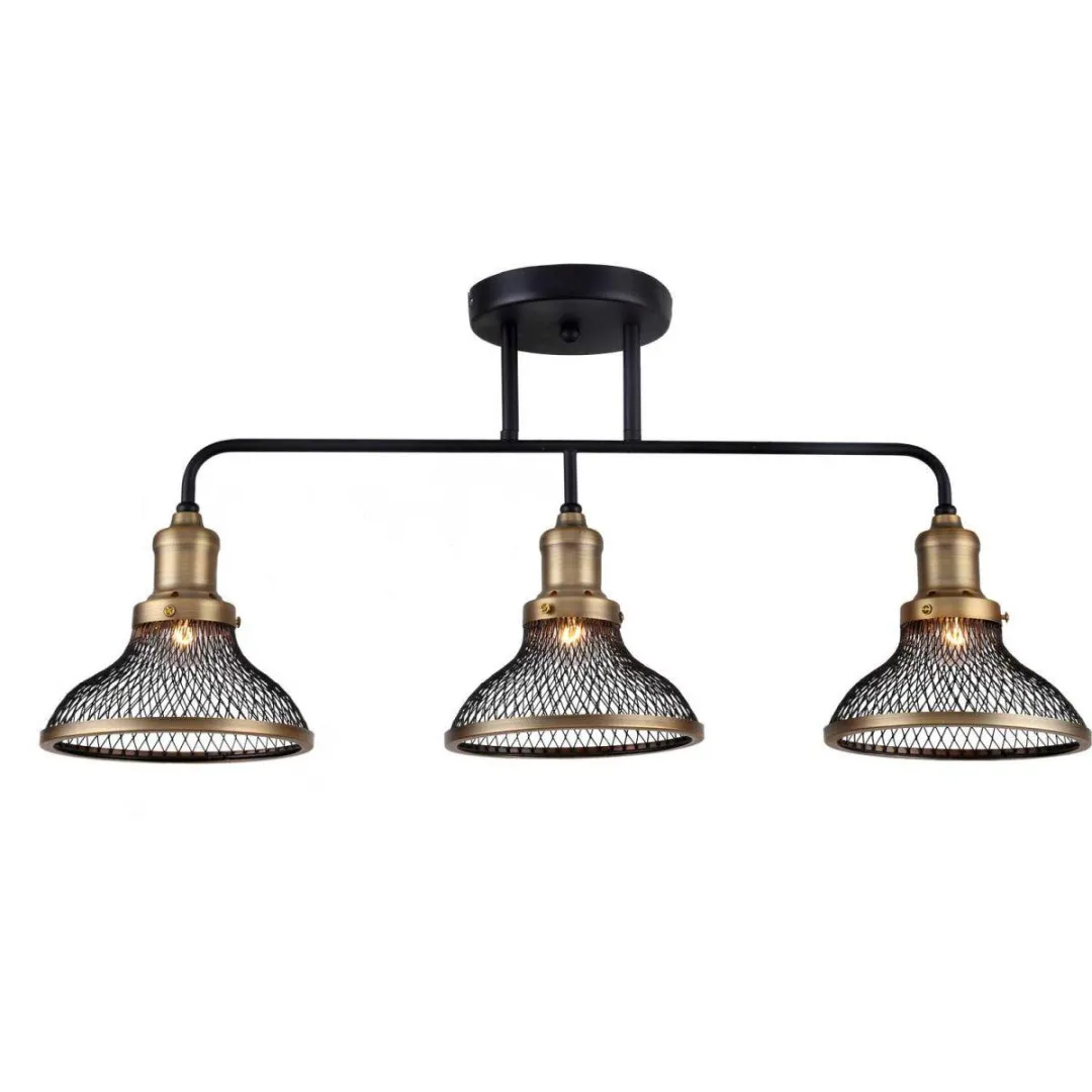 Люстра потолочная на штанге из коллекции Feloria выполнена из металла, окрашенного в черный цвет. Отдельные элементы арматуры гальванизированы в цвет бронзы. Плафоны, окрашенные в цвет арматуры, выполнены в виде сетки.
