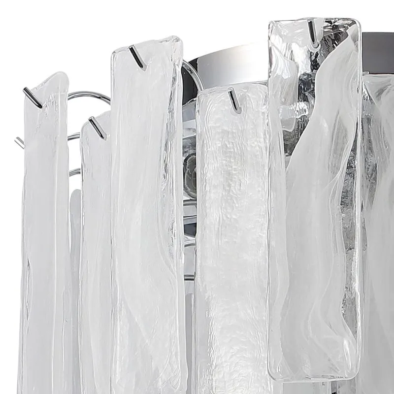 Люстра потолочная из коллекции Glowice выполнена из металла, гальванизированного в цвет хрома, и декорирована алебастровым стеклом, отлитым в индивидуальную форму и имитирующим лед.