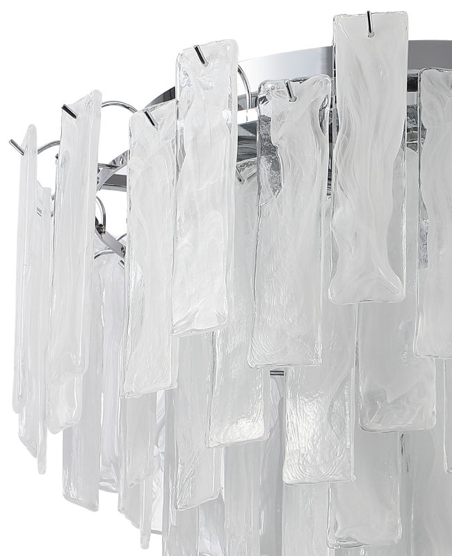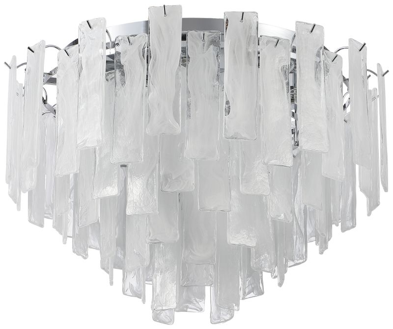 Люстра потолочная из коллекции Glowice выполнена из металла, гальванизированного в цвет хрома, и декорирована алебастровым стеклом, отлитым в индивидуальную форму и имитирующим лед.