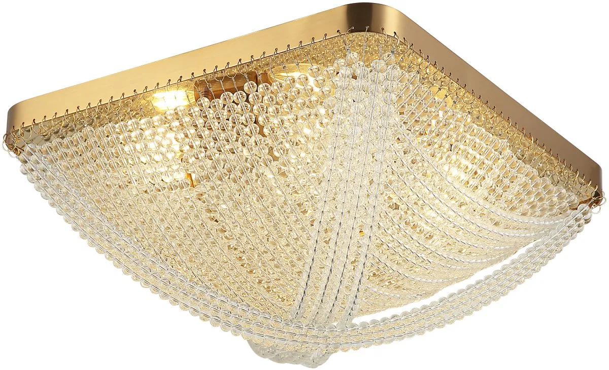Люстра потолочная коллекции Marelli выполнена из металла, гальванизированного в цвет бронзы, и декорирована прозрачными стеклянными сферами, собранными в элегантные бусы.. Потолочная чаша закрыта листом нержавеющей стали, отполированной до зеркального блеска,  гальванизированной в цвет арматуры.