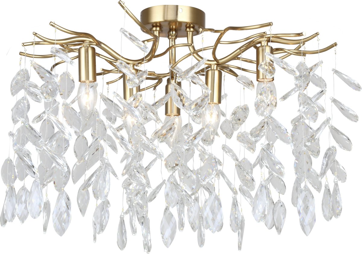 Люстра потолочная коллекции RAMO выполнена из металла, гальванизированного в цвет бронзы, и декорирована гроздьями из хрусталя винтажной формы. Отличительной особенностью данной коллекции является ручное изготовление каркаса с дополнительной полировкой стыков арматуры и увеличенным количеством хрустальных подвесок (42 веточки по 5 кристаллов).