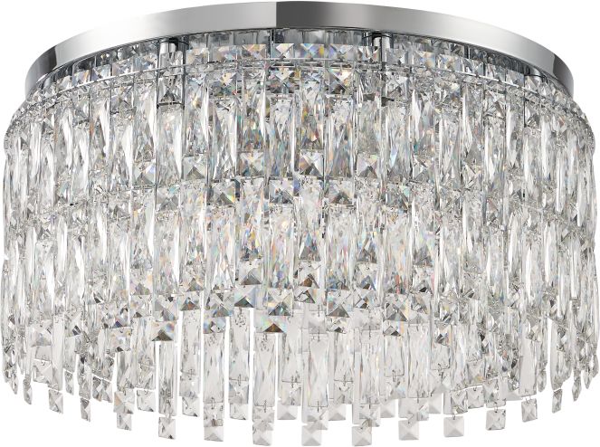 Люстра потолочная из коллекции Santorini выполнена из металла, гальванизированного в цвет хрома, и декорирована узкими прямоугольными подвесками из хрусталя высшего качества. Современная форма и высокое качество светильников идеально подойдут как в классические, так и современные интерьеры. Из данной коллекции светильников можно сделать индивидуальный заказ любого цвета и размера.