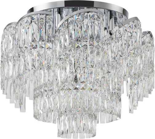Люстра потолочная из коллекции Sapparo выполнена из металла, гальванизированного в цвет хрома, и декорирована хрусталем вытянутой формы высшей категории. Хрусталь многослойно располагается на изогнутых металлических элементах в виде спирали. Современная форма и высокое качество светильников идеально подойдут как в классические, так и современные интерьеры. Из данной коллекции светильников можно сделать индивидуальный заказ любого цвета и размера.