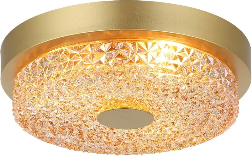 Светильник потолочный коллекции Stat выполнен из металла золотого цвета и декоративного янтарного стекла с рифлёной структурой высокого качества. Современная форма и высокое качество светильников идеально подойдут как в классические, так и современные интерьеры. Из данной коллекции светильников можно сделать индивидуальный заказ любого цвета и размера.