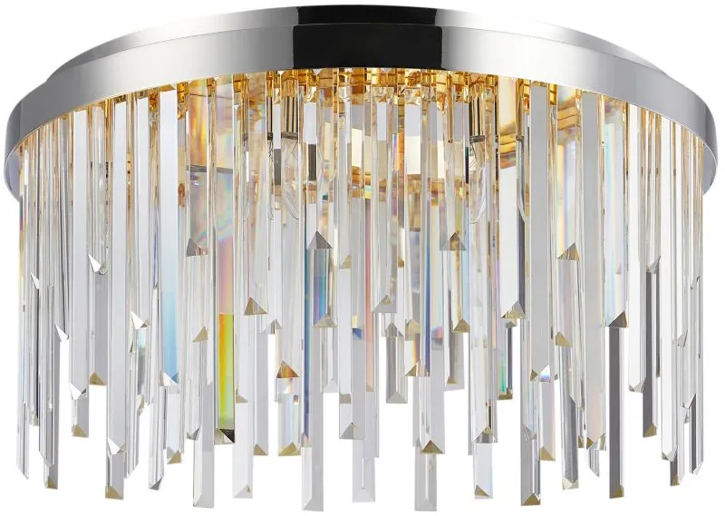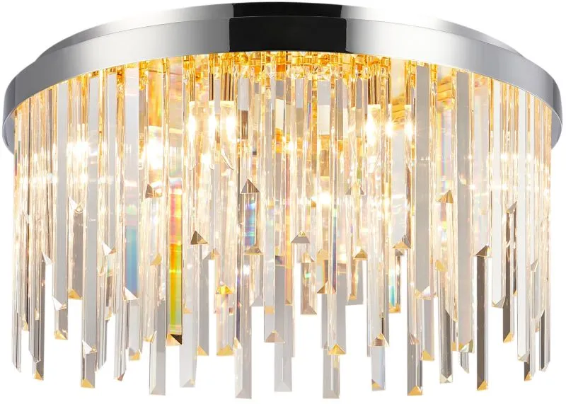 Люстра потолочная из коллекции Venecia выполнена из металла, гальванизированного в цвет хрома, и декорирована прозрачным хрусталем высшей категории прямоугольной формы разной длины. Современная форма и высокое качество светильников идеально подойдут как в классические, так и современные интерьеры.