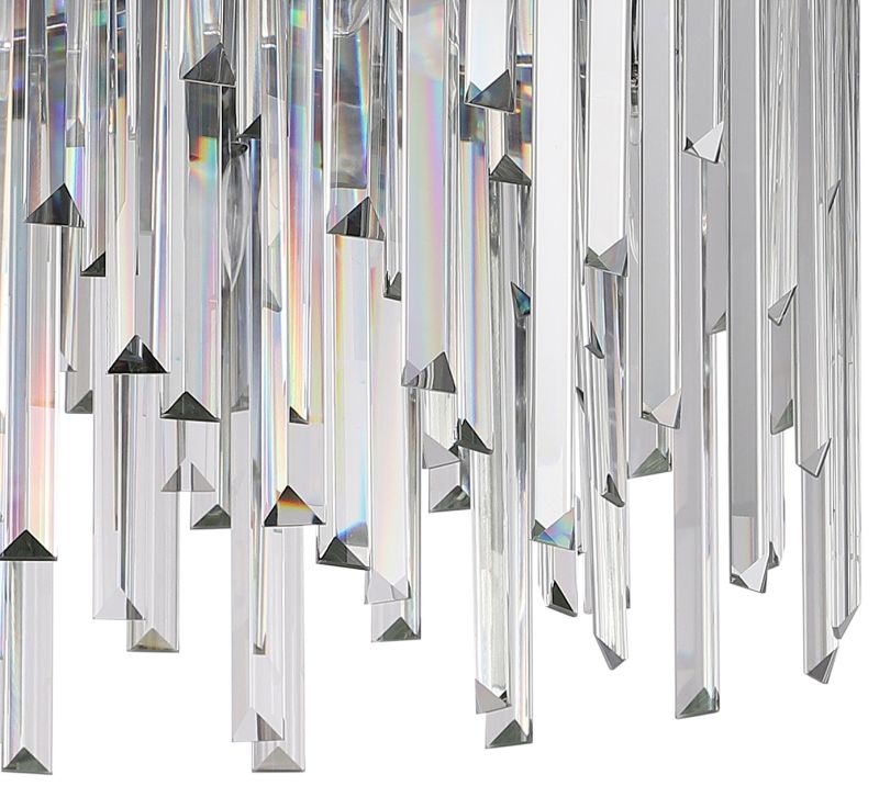 Люстра потолочная из коллекции Venecia выполнена из металла, гальванизированного в цвет хрома, и декорирована прозрачным хрусталем высшей категории прямоугольной формы разной длины. Современная форма и высокое качество светильников идеально подойдут как в классические, так и современные интерьеры.