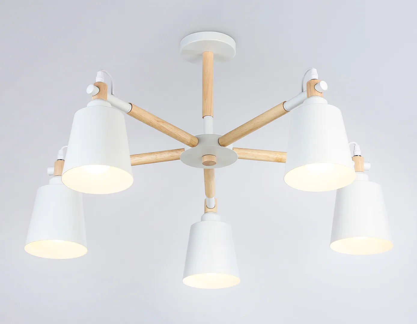 Потолочная люстра TR82208/5 WH/LW белый/светлое дерево E27/5 max 40W D780*430