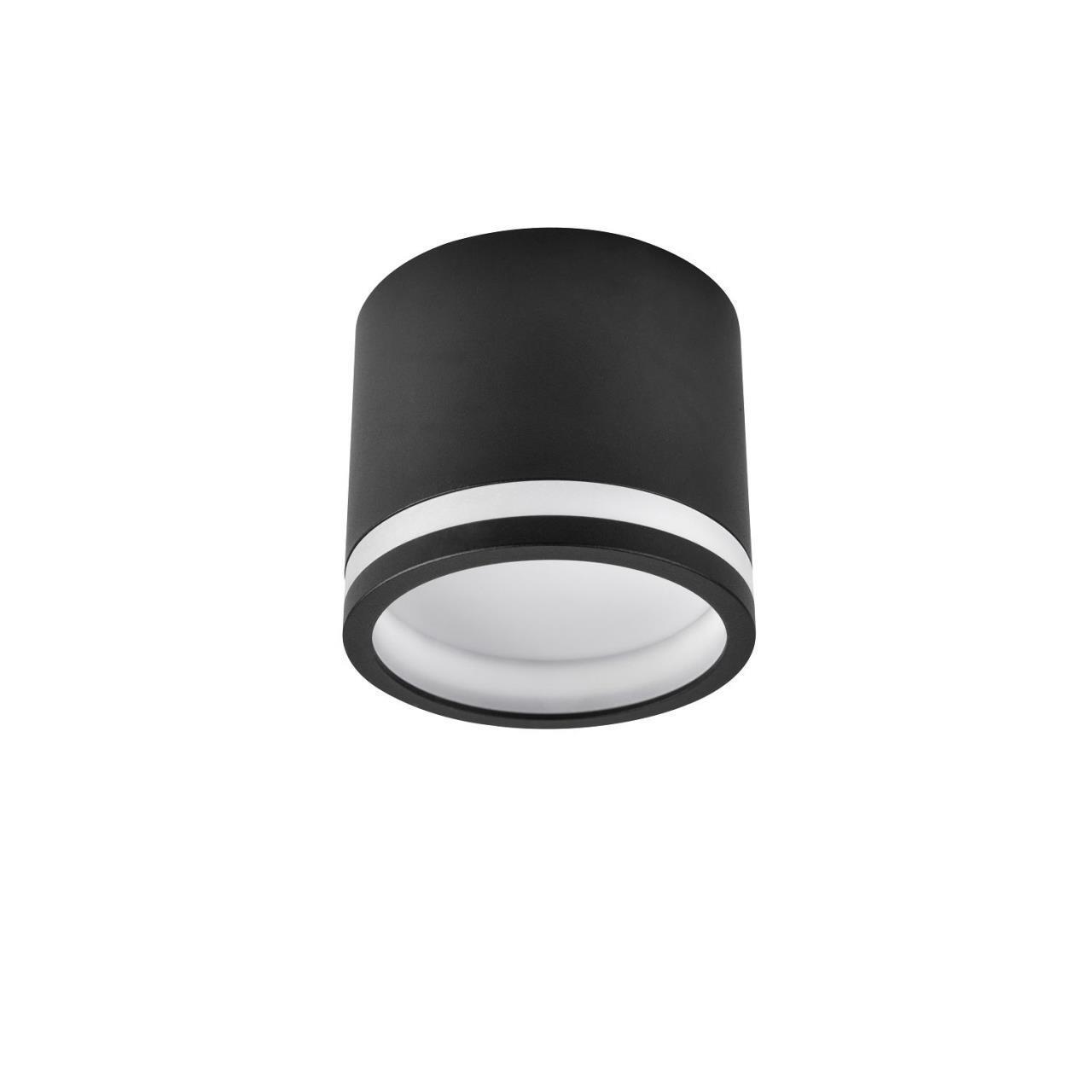 потолочные накладные светильники под сменную лампу GU10, металлический каркас черного цвета, декоративные элементы из акрила в виде светящегося кольца.