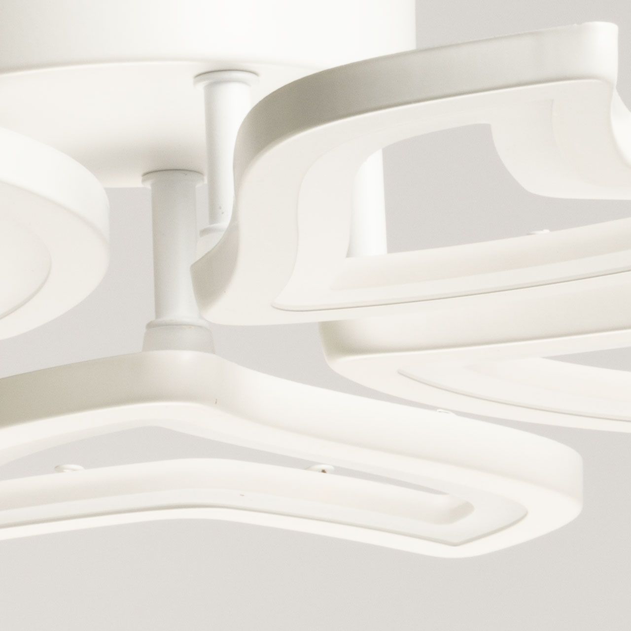 Металлическое основание потолочной люстры окрашено в белый цвет. Корпус плафонов выполнен из сплава алюминия с цинком и окрашен в цвет основания. Светодиодные источники света закрыты белым матовым акрилом.