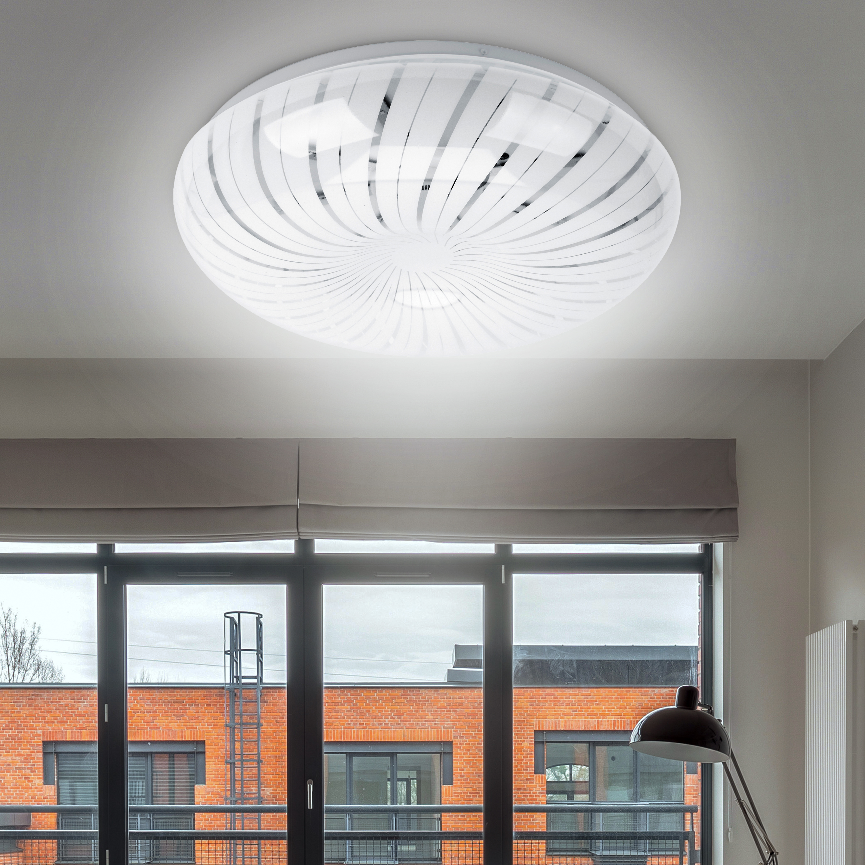 Благодаря плафону из матового пластика обеспечивается равномерное распределение света. В совокупности со световой температурой в 4000 К создается приятное белое свечение, защищающее глаза.